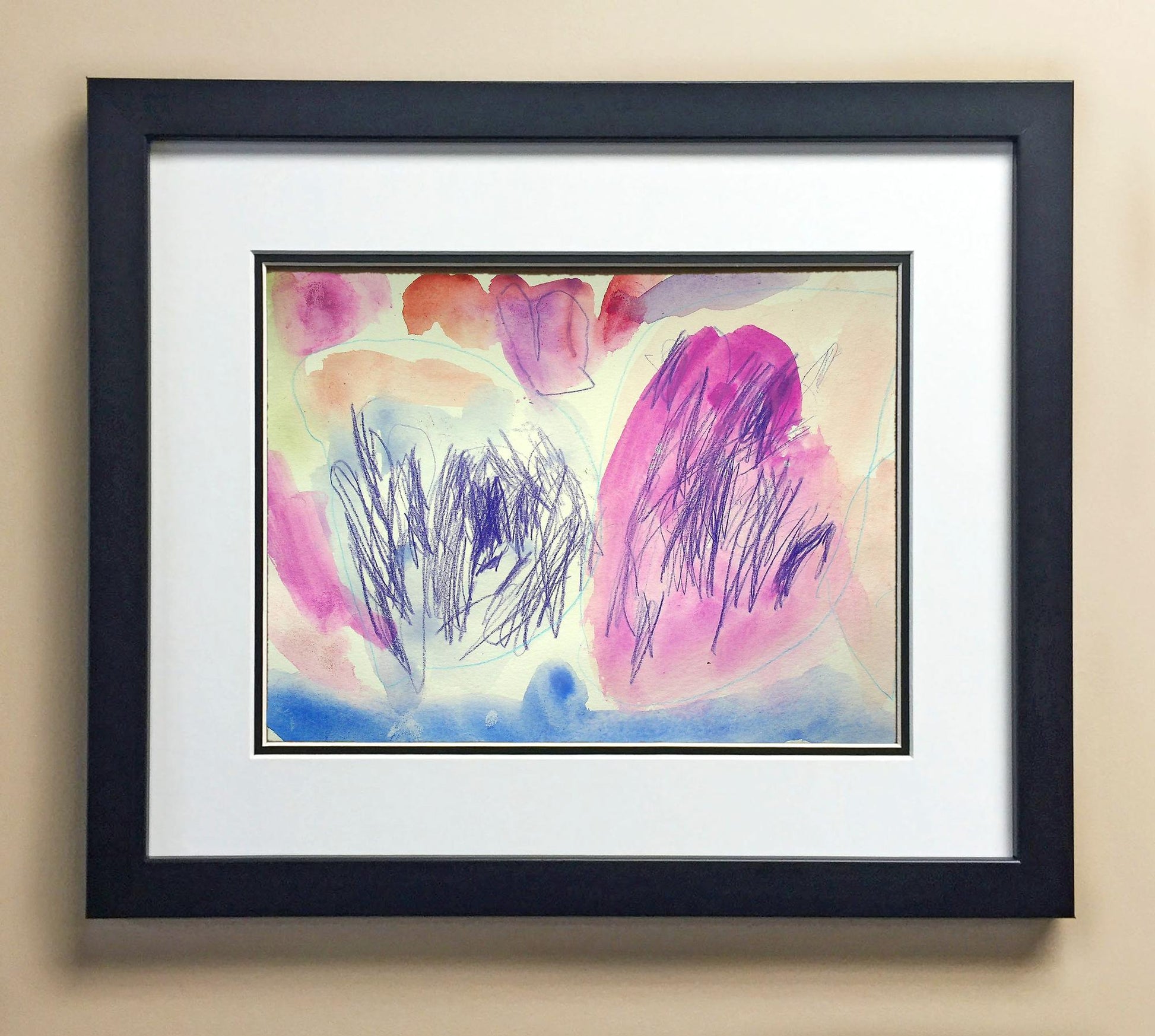 Included with the purchase is the Students Artwork, Frame, double matboard, shatter proof plexiglass, and a ready to hang backerboard with turnbuttons