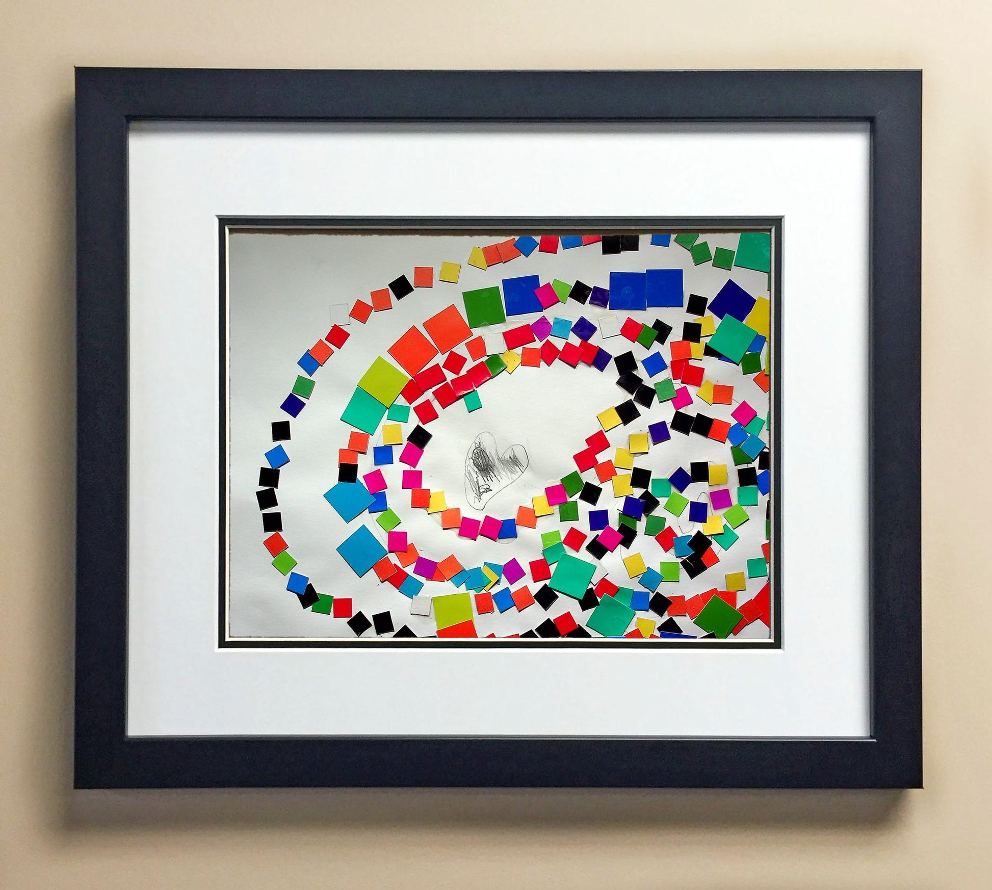 Included with the purchase is the Students Artwork, Frame, double matboard, shatter proof plexiglass, and a ready to hang backerboard with turnbuttons