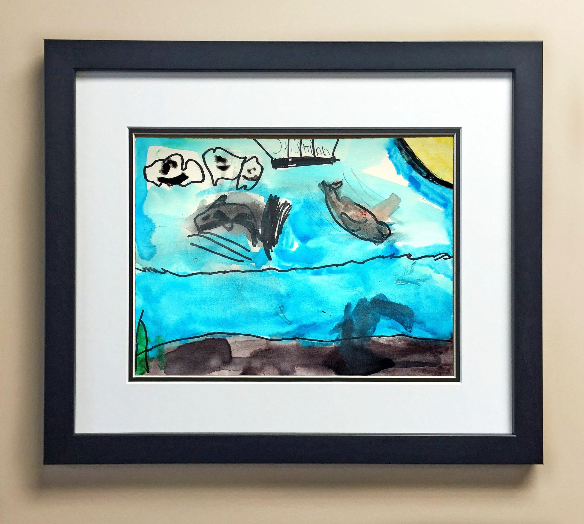 Included with the purchase is the Students Artwork, Frame, double matboard, shatter proof plexiglass, and a ready to hang backerboard with turnbuttons
