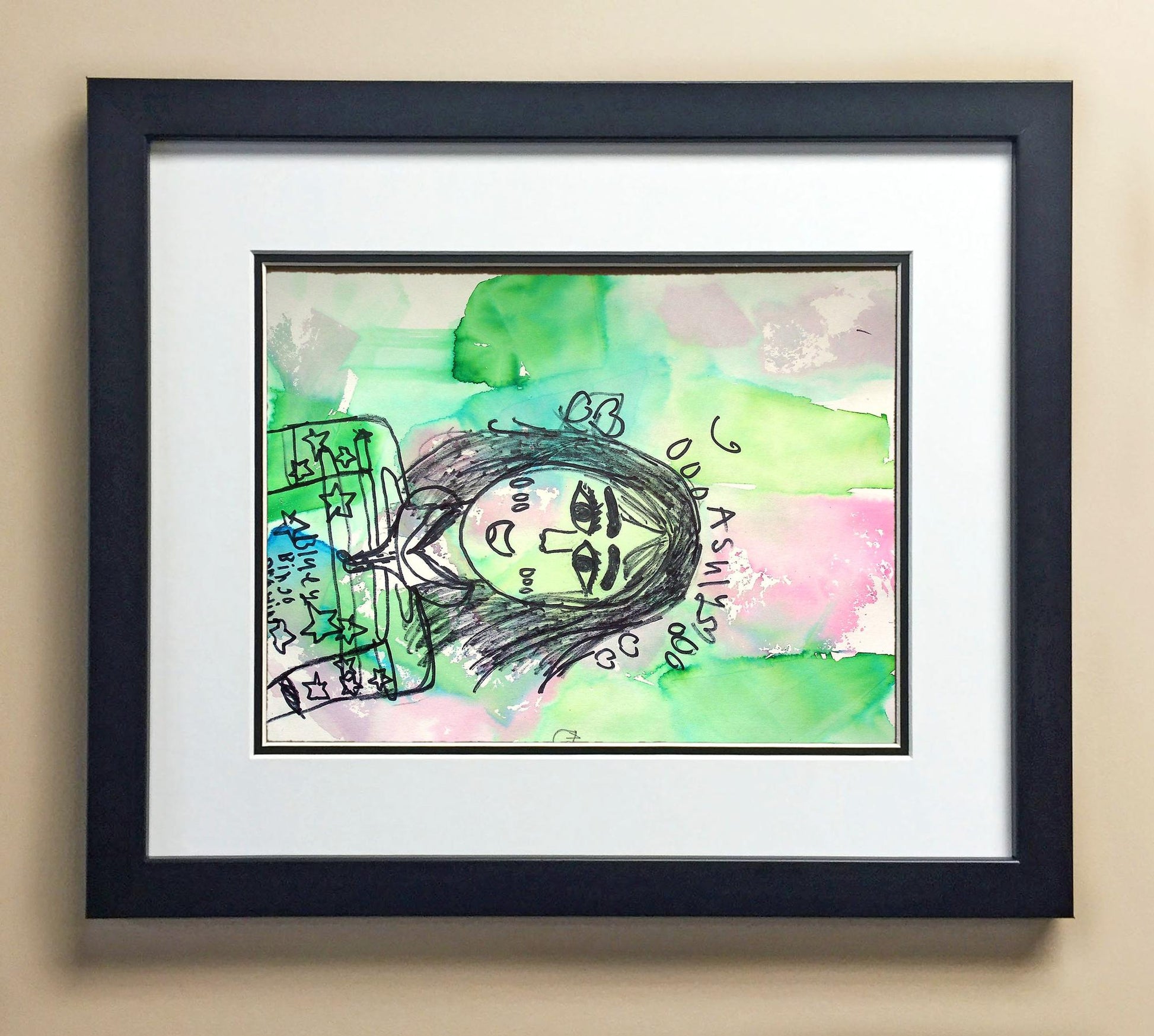 Included with the purchase is the Students Artwork, Frame, double matboard, shatter proof plexiglass, and a ready to hang backerboard with turnbuttons
