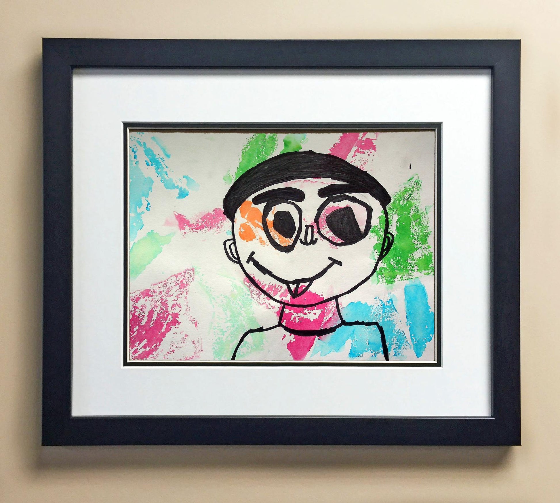 Included with the purchase is the Students Artwork, Frame, double matboard, shatter proof plexiglass, and a ready to hang backerboard with turnbuttons