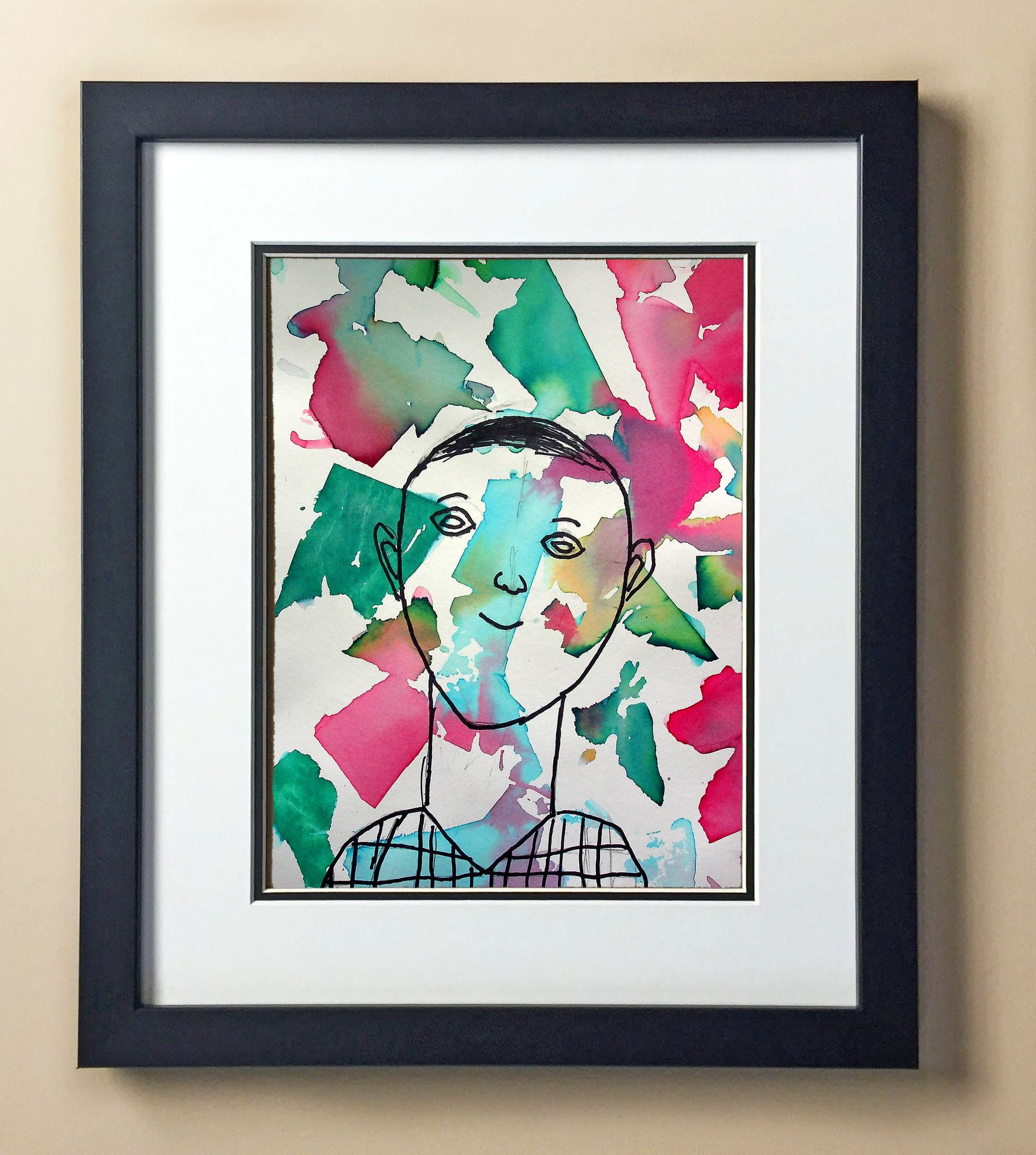 Included with the purchase is the Students Artwork, Frame, double matboard, shatter proof plexiglass, and a ready to hang backerboard with turnbuttons