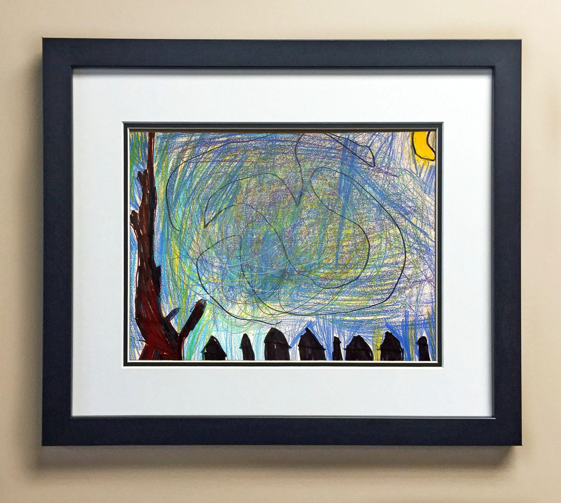 Included with the purchase is the Students Artwork, Frame, double matboard, shatter proof plexiglass, and a ready to hang backerboard with turnbuttons
