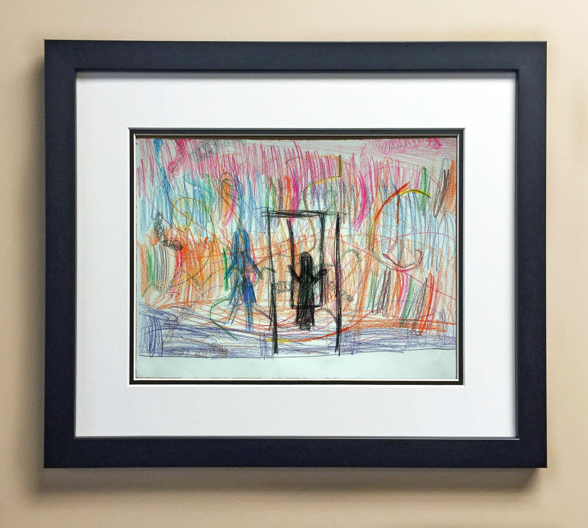 Included with the purchase is the Students Artwork, Frame, double matboard, shatter proof plexiglass, and a ready to hang backerboard with turnbuttons
