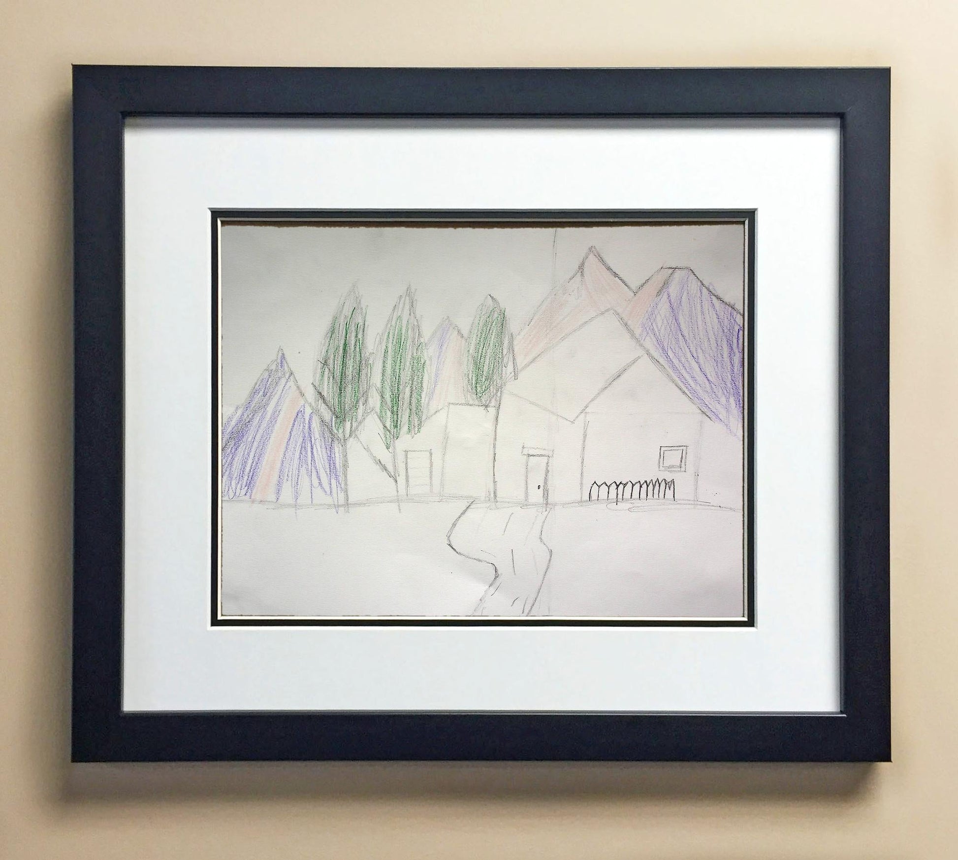 Included with the purchase is the Students Artwork, Frame, double matboard, shatter proof plexiglass, and a ready to hang backerboard with turnbuttons