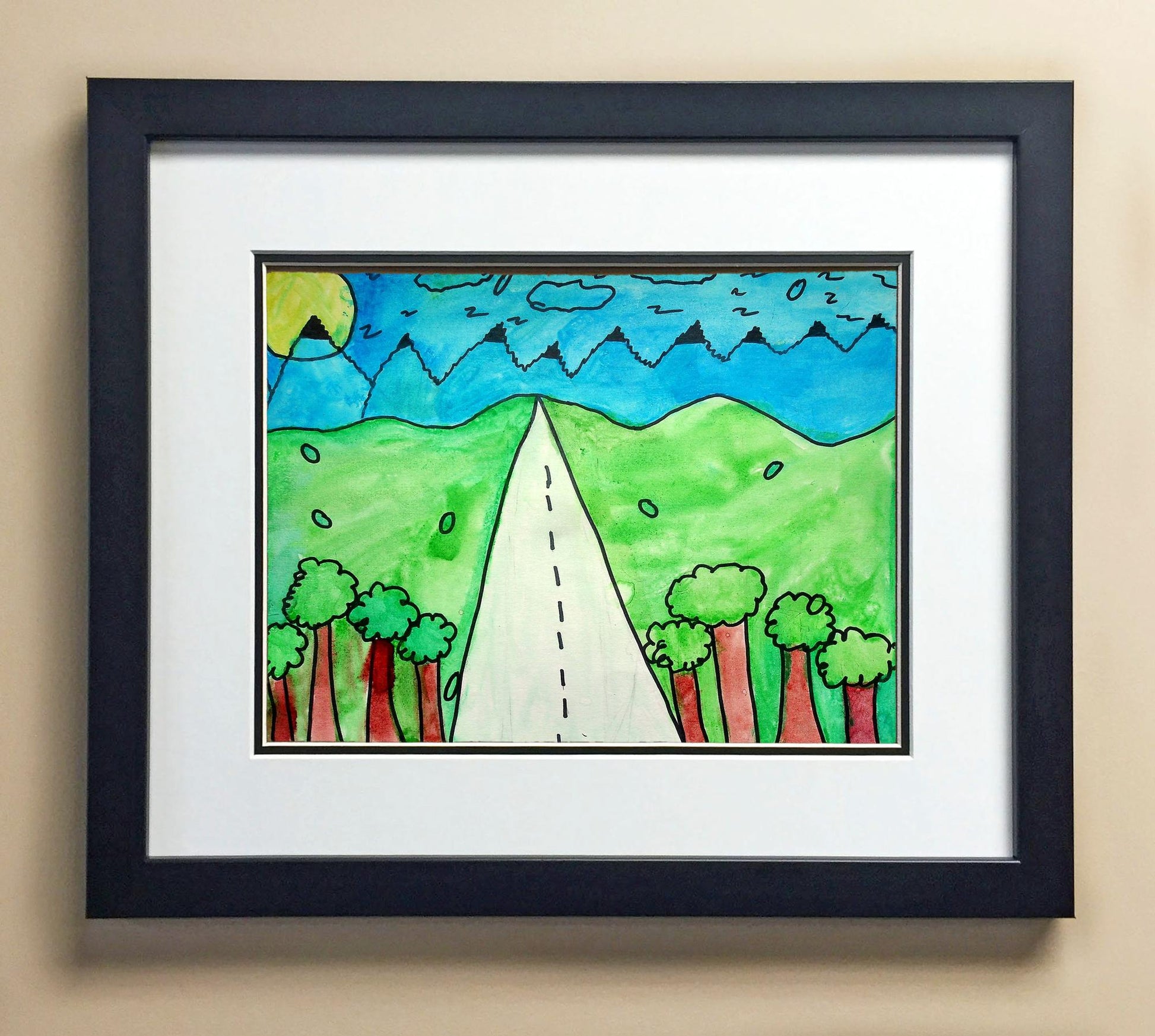 Included with the purchase is the Students Artwork, Frame, double matboard, shatter proof plexiglass, and a ready to hang backerboard with turnbuttons