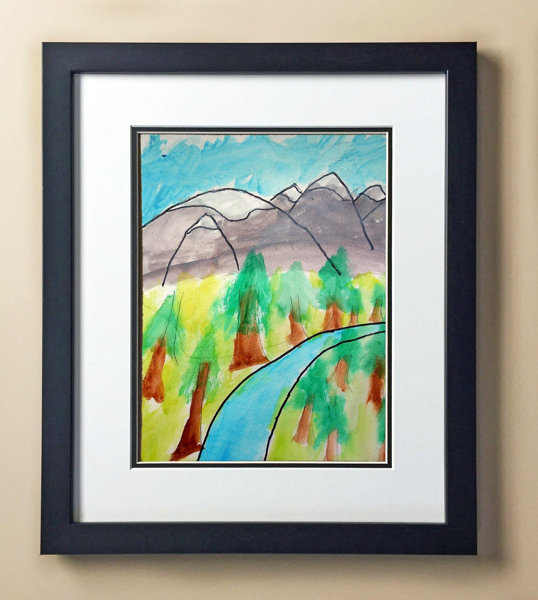 Included with the purchase is the Students Artwork, Frame, double matboard, shatter proof plexiglass, and a ready to hang backerboard with turnbuttons