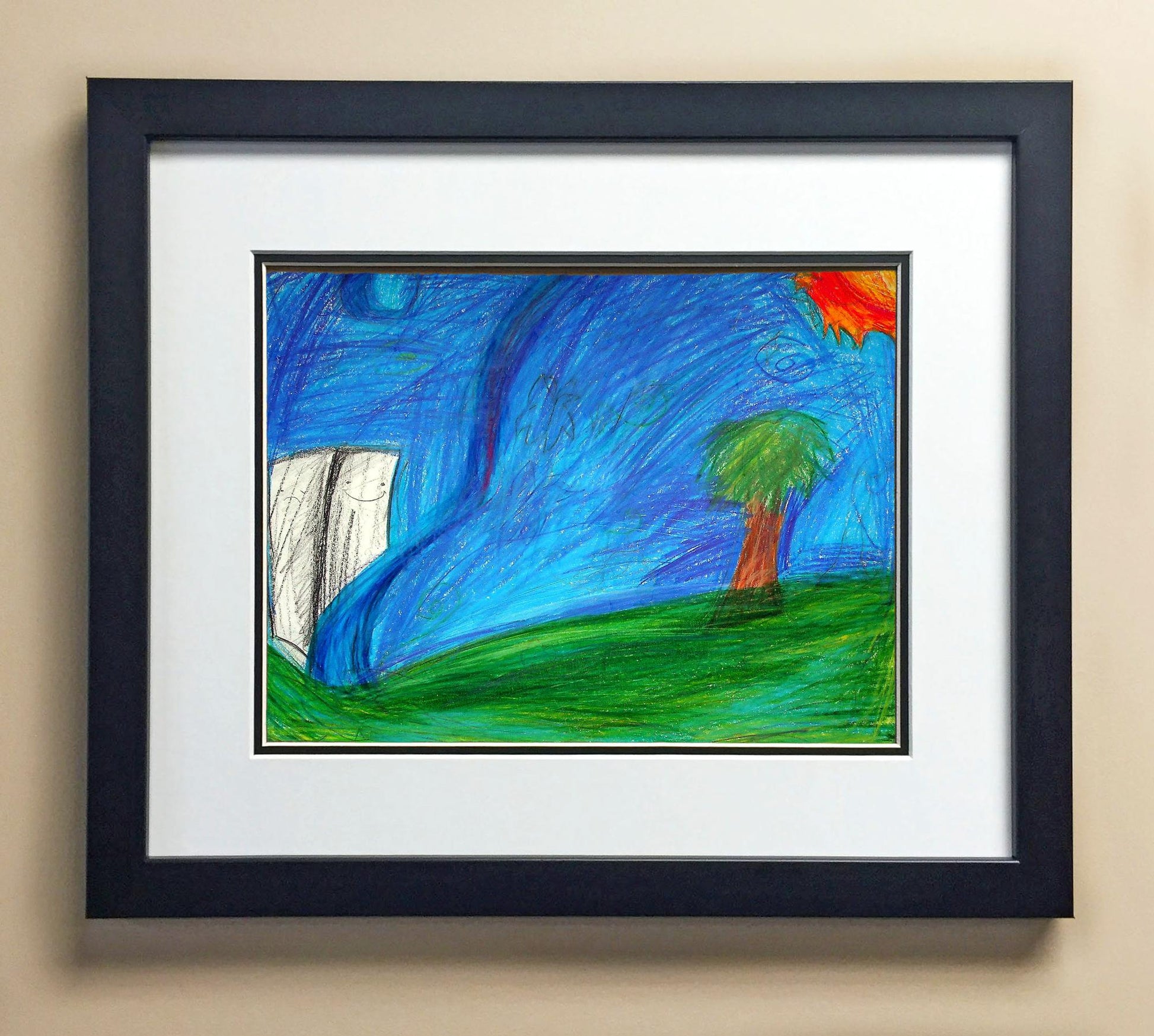 Included with the purchase is the Students Artwork, Frame, double matboard, shatter proof plexiglass, and a ready to hang backerboard with turnbuttons