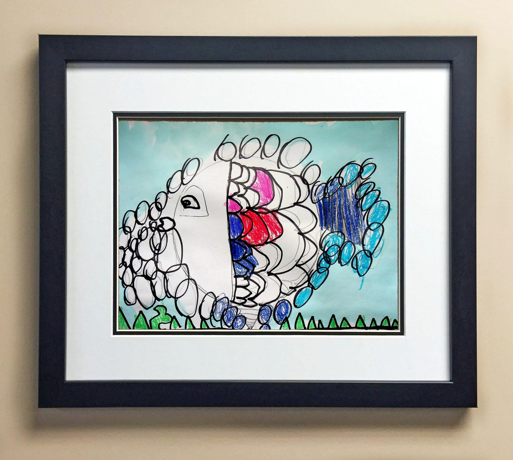 Included with the purchase is the Students Artwork, Frame, double matboard, shatter proof plexiglass, and a ready to hang backerboard with turnbuttons