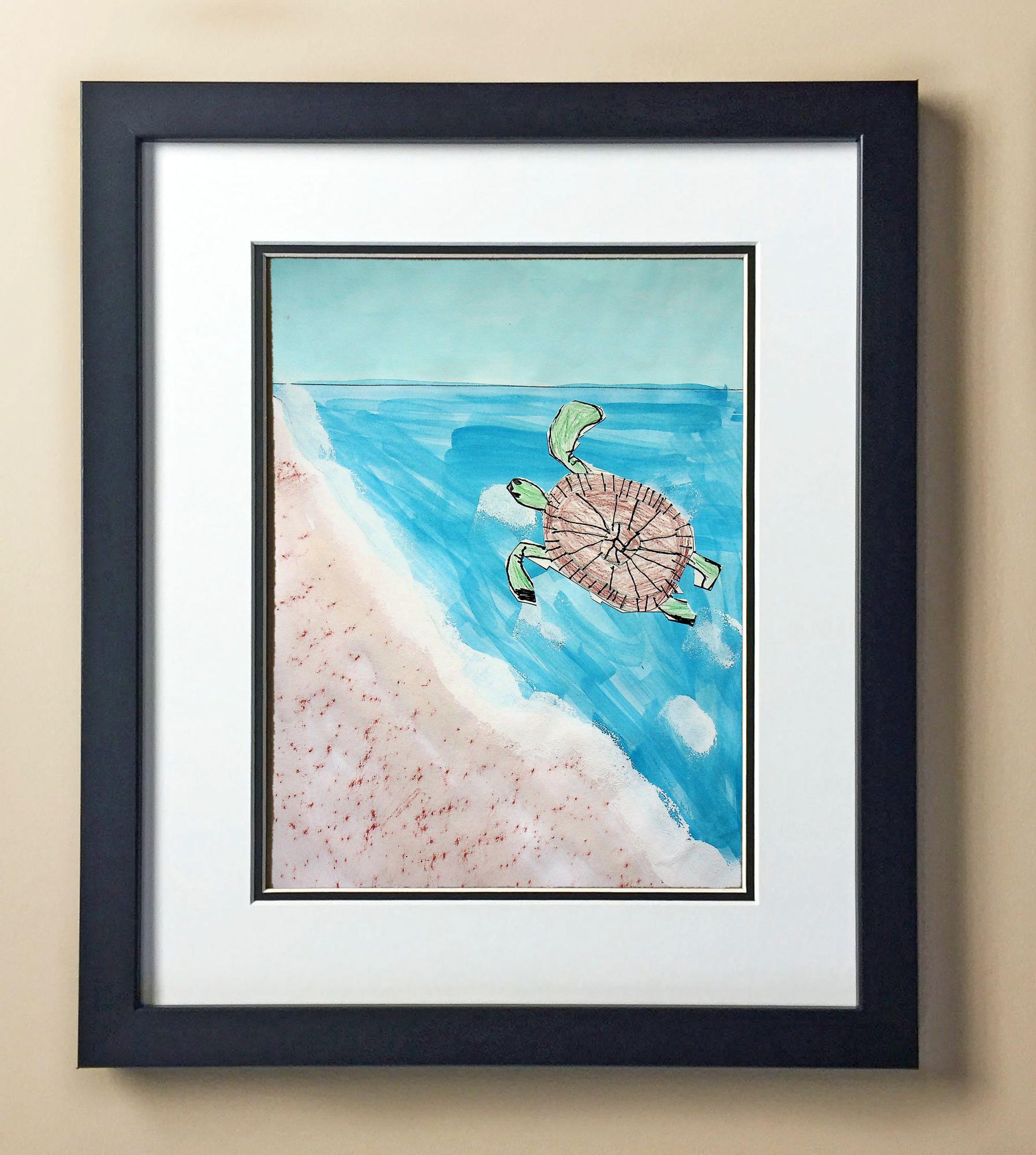 Included with the purchase is the Students Artwork, Frame, double matboard, shatter proof plexiglass, and a ready to hang backerboard with turnbuttons