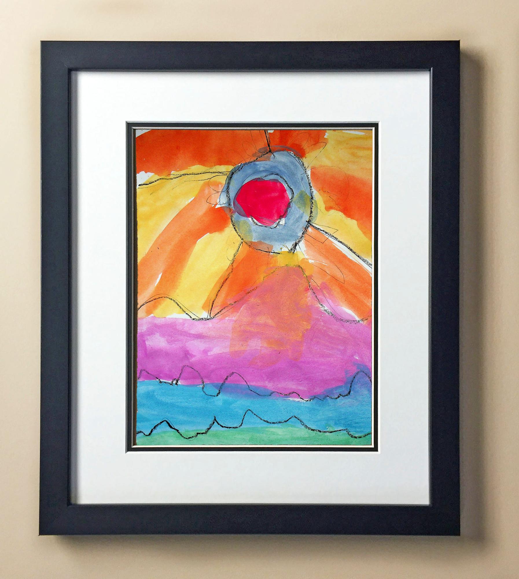 Included with the purchase is the Students Artwork, Frame, double matboard, shatter proof plexiglass, and a ready to hang backerboard with turnbuttons