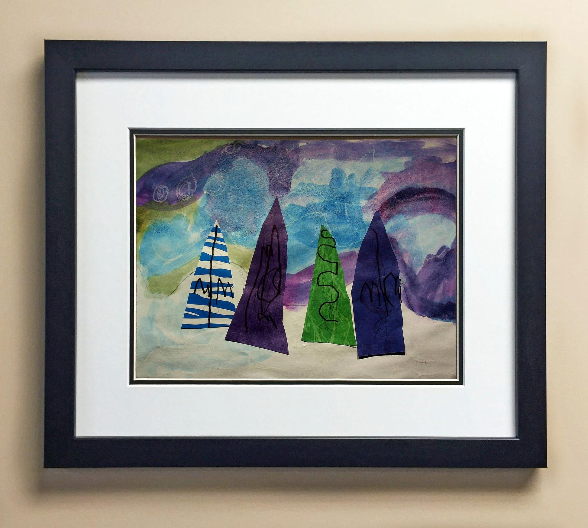 Included with the purchase is the Students Artwork, Frame, double matboard, shatter proof plexiglass, and a ready to hang backerboard with turnbuttons
