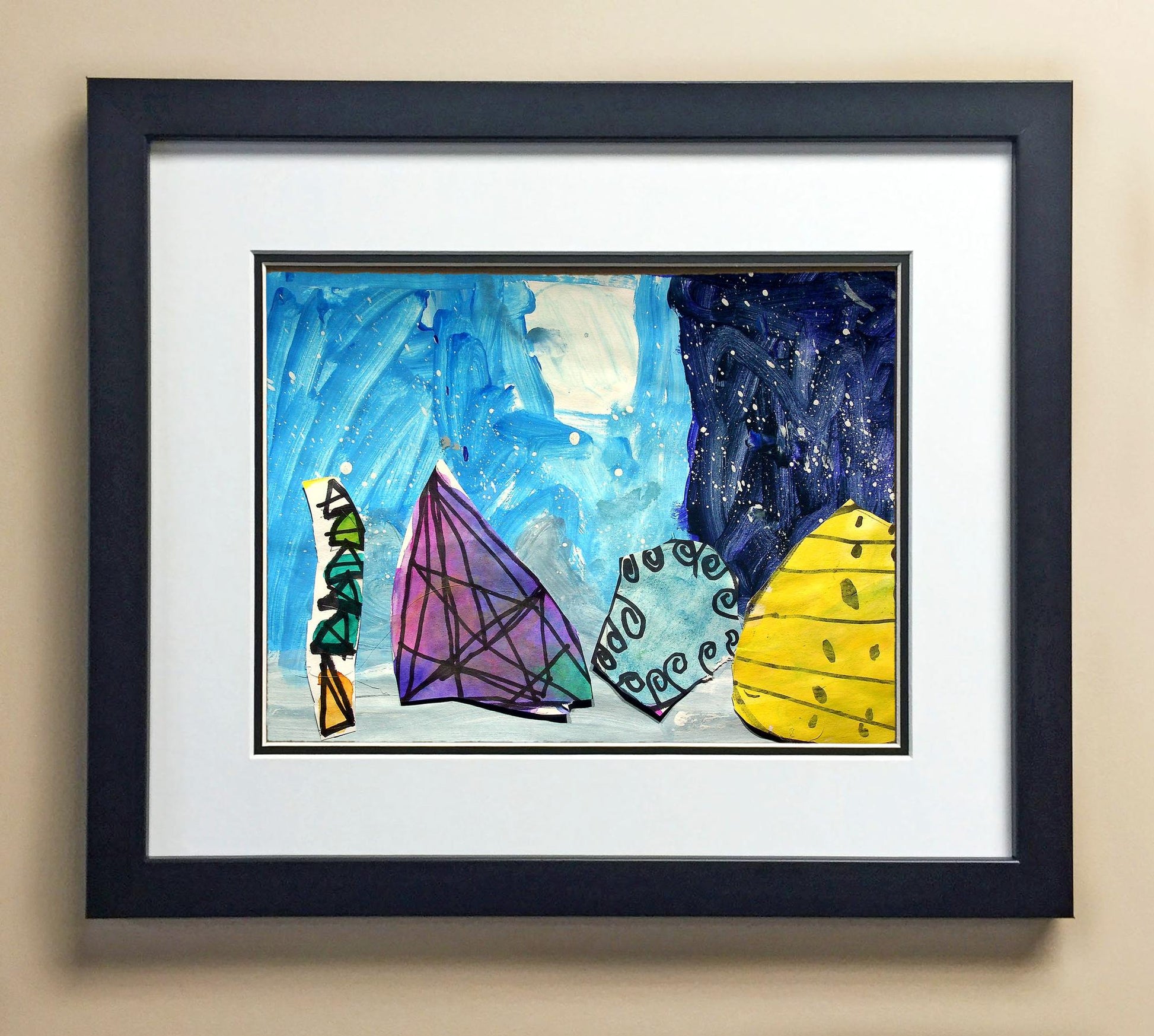 Included with the purchase is the Students Artwork, Frame, double matboard, shatter proof plexiglass, and a ready to hang backerboard with turnbuttons