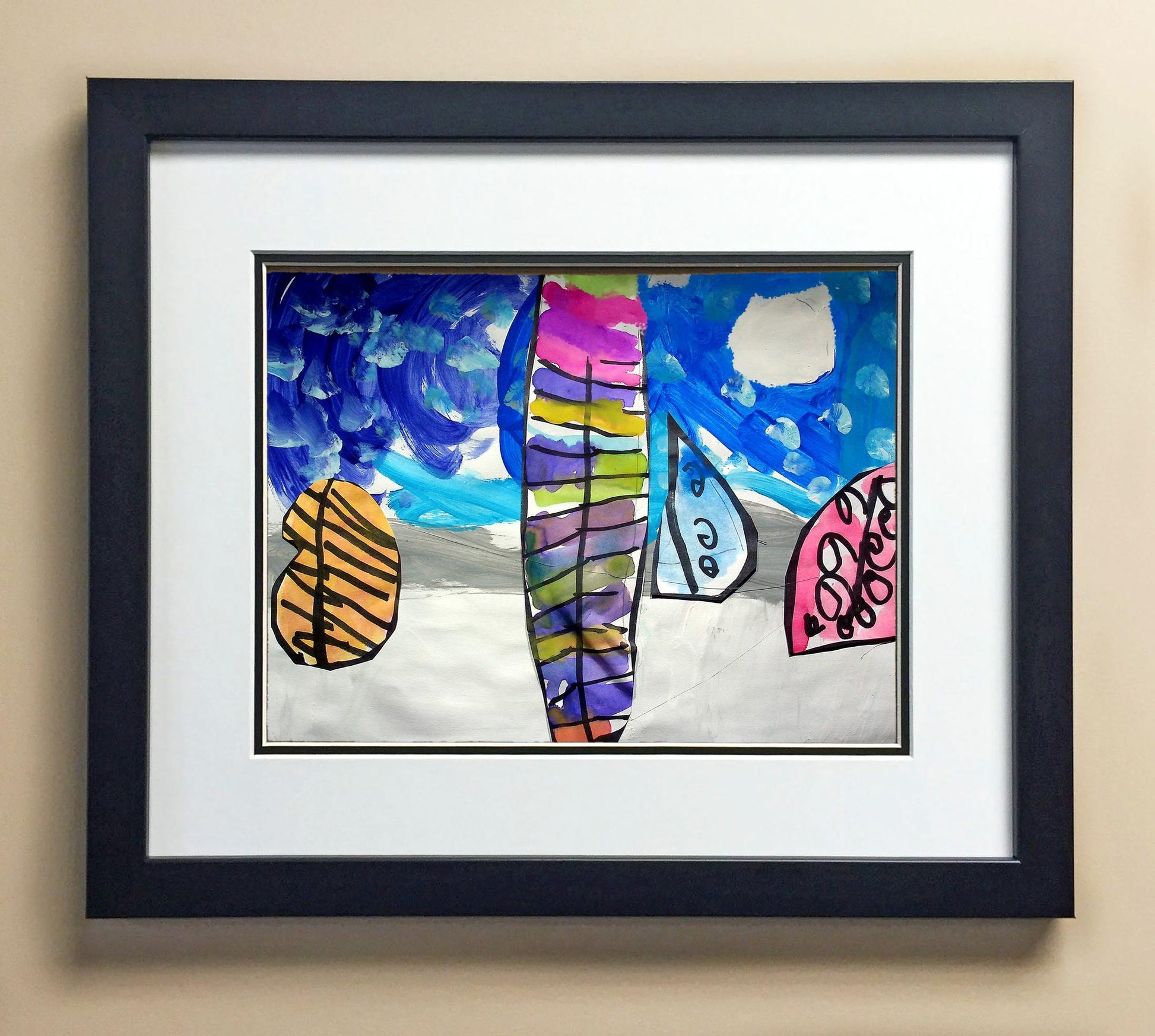 Included with the purchase is the Students Artwork, Frame, double matboard, shatter proof plexiglass, and a ready to hang backerboard with turnbuttons