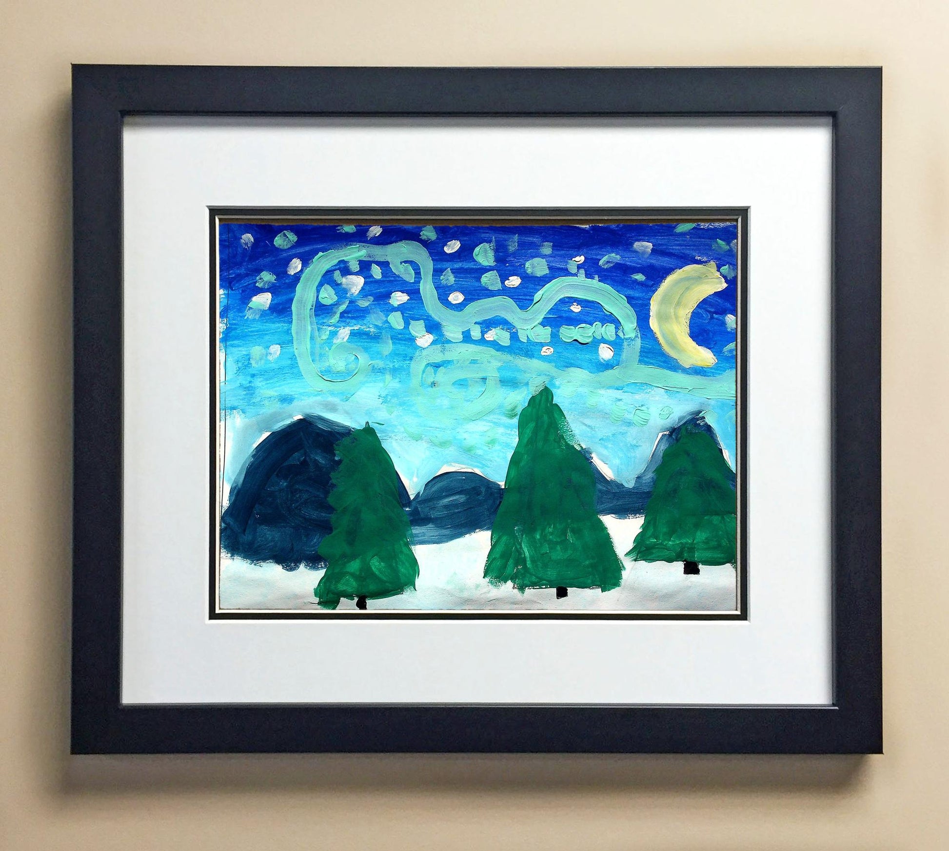 Included with the purchase is the Students Artwork, Frame, double matboard, shatter proof plexiglass, and a ready to hang backerboard with turnbuttons
