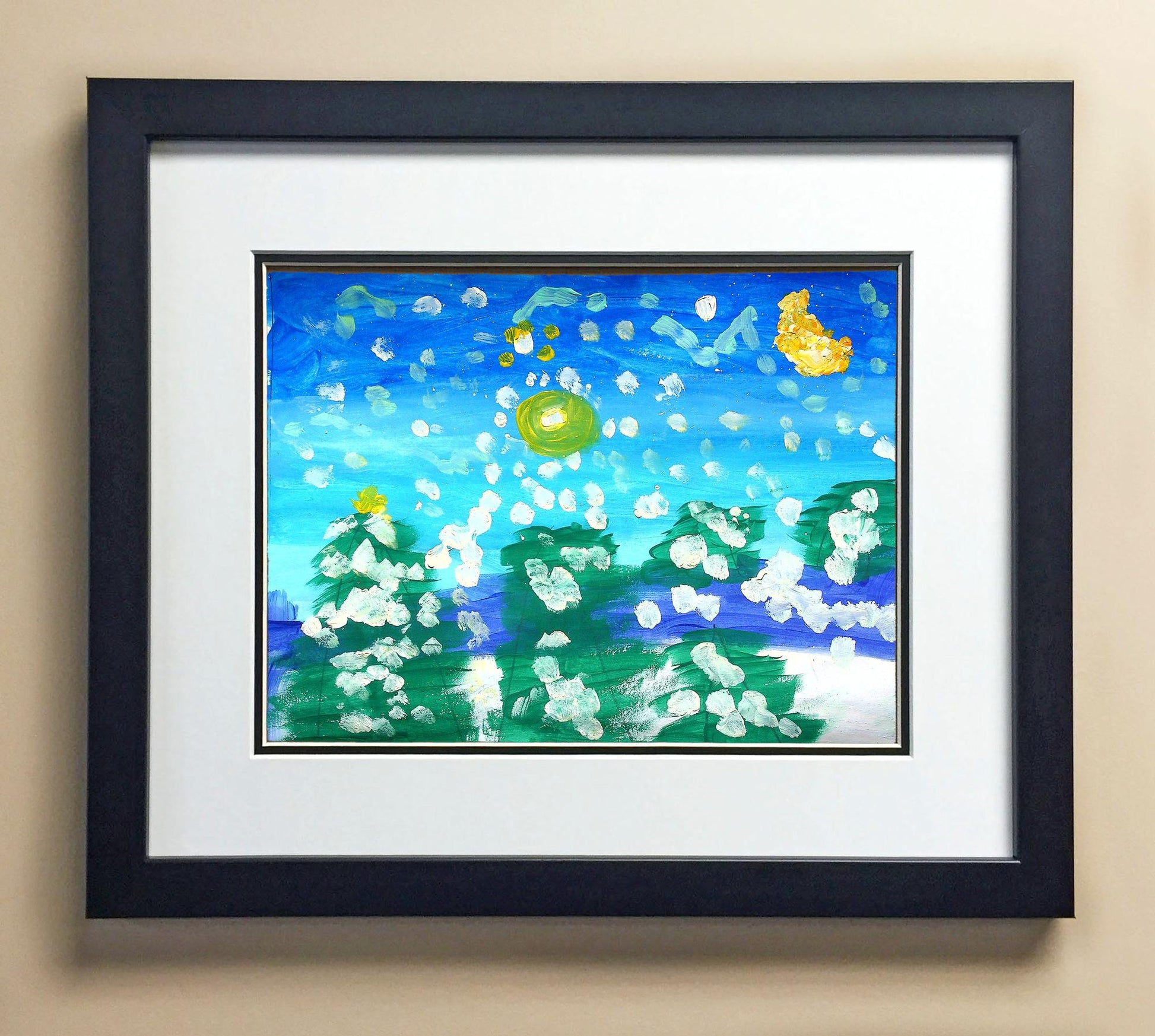 Included with the purchase is the Students Artwork, Frame, double matboard, shatter proof plexiglass, and a ready to hang backerboard with turnbuttons