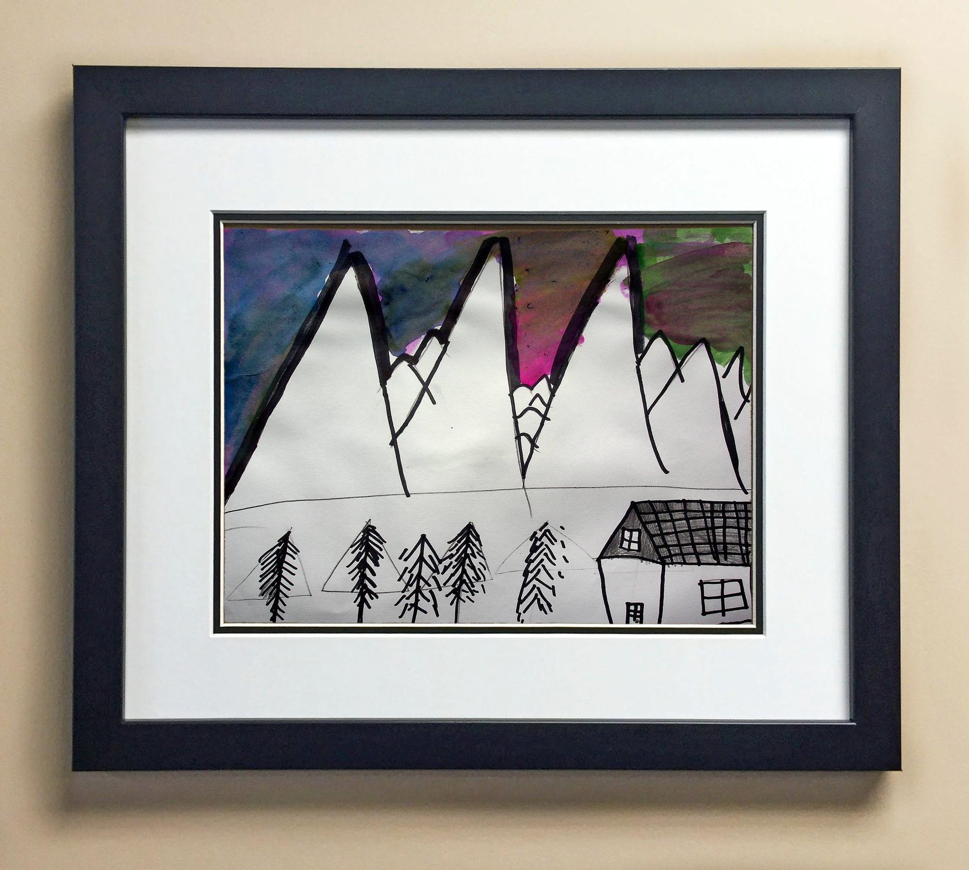 Included with the purchase is the Students Artwork, Frame, double matboard, shatter proof plexiglass, and a ready to hang backerboard with turnbuttons