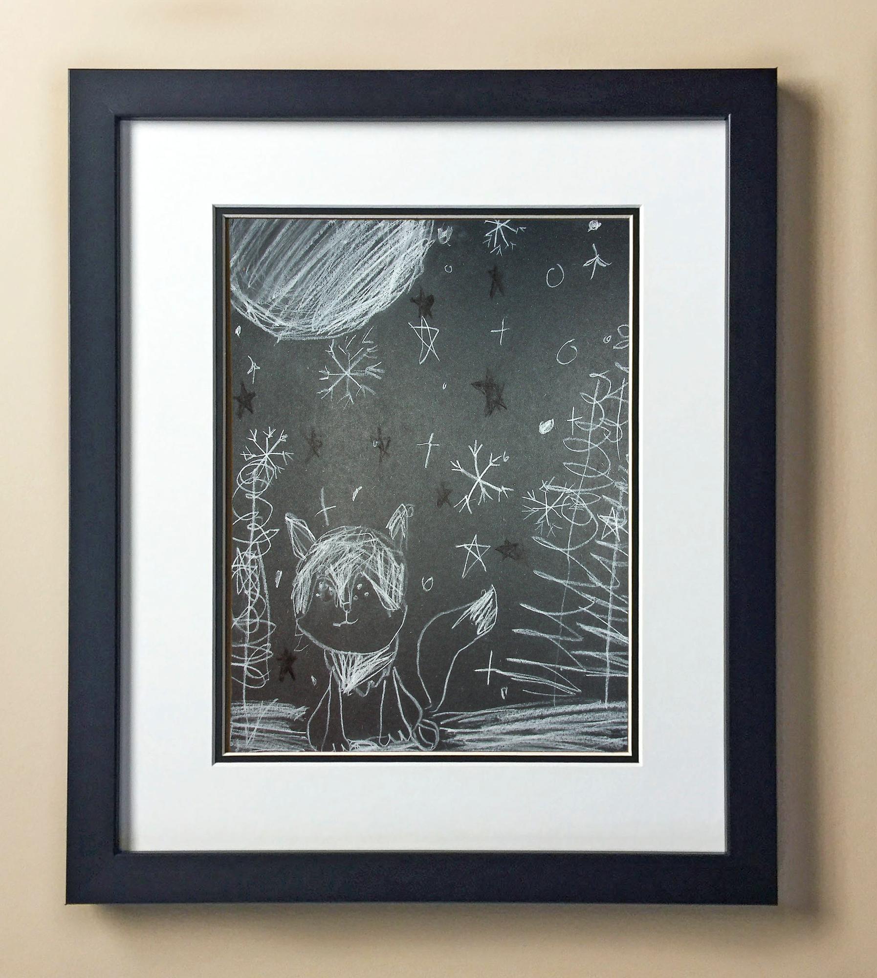 Included with the purchase is the Students Artwork, Frame, double matboard, shatter proof plexiglass, and a ready to hang backerboard with turnbuttons