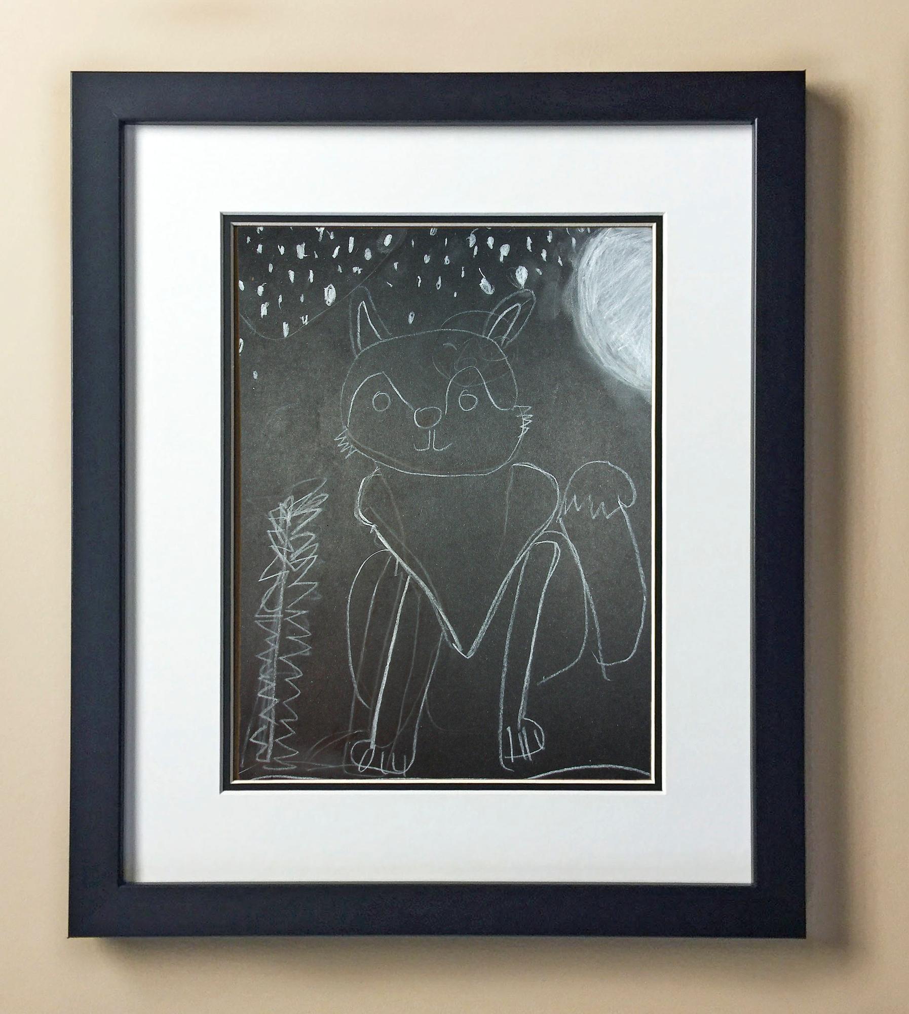 Included with the purchase is the Students Artwork, Frame, double matboard, shatter proof plexiglass, and a ready to hang backerboard with turnbuttons