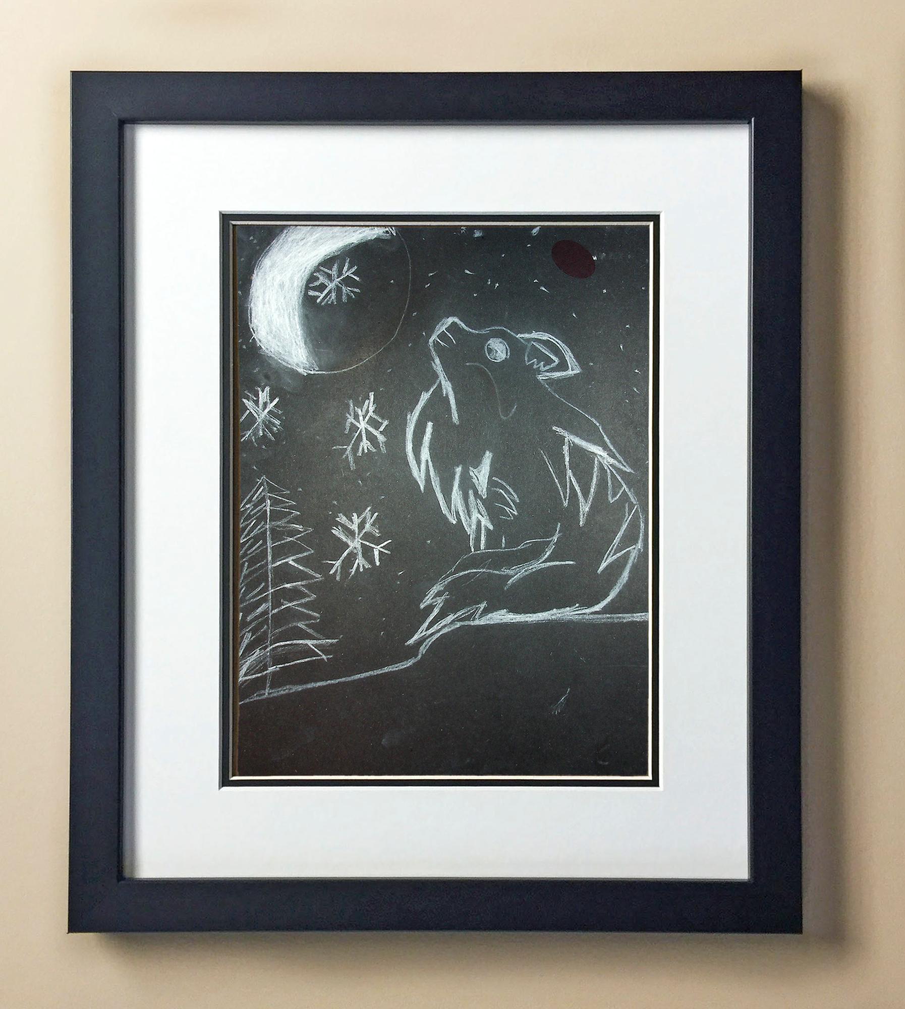 Included with the purchase is the Students Artwork, Frame, double matboard, shatter proof plexiglass, and a ready to hang backerboard with turnbuttons
