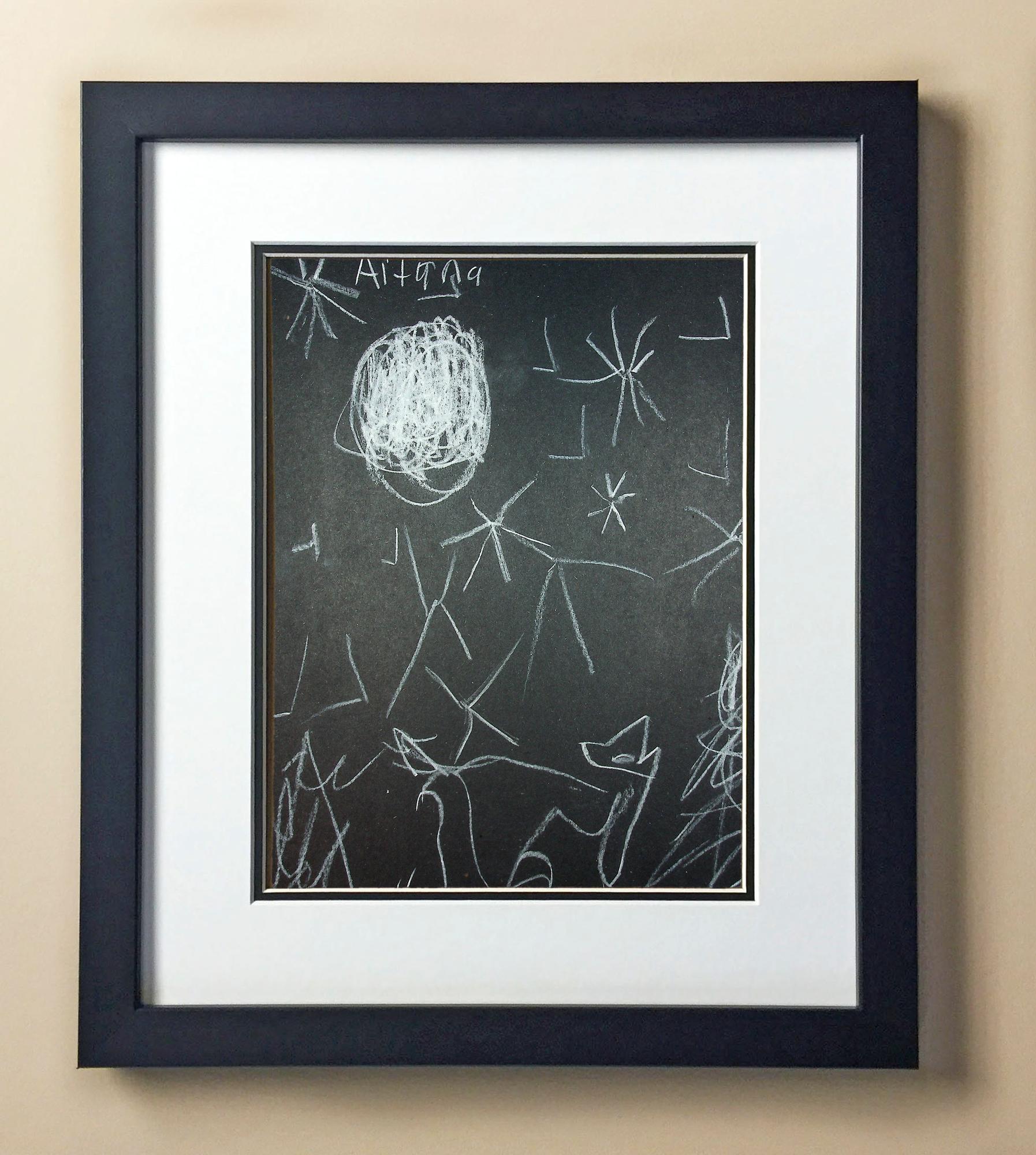 Included with the purchase is the Students Artwork, Frame, double matboard, shatter proof plexiglass, and a ready to hang backerboard with turnbuttons