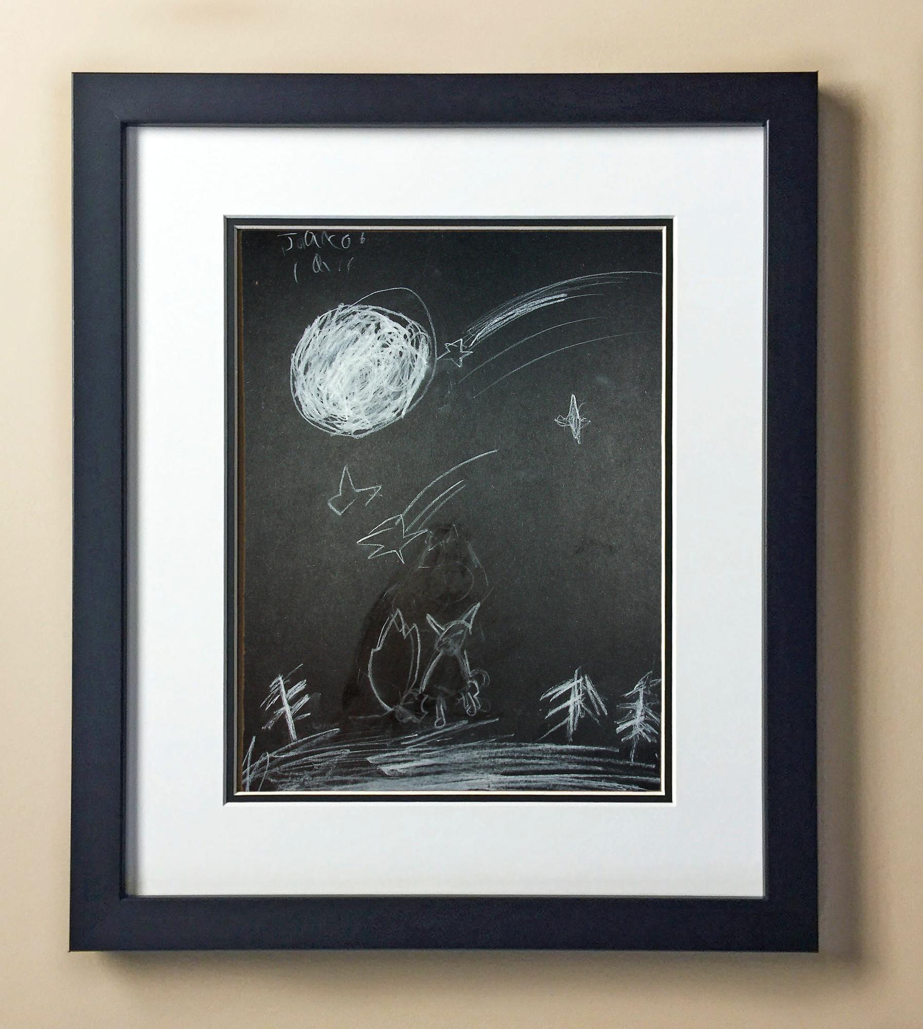 Included with the purchase is the Students Artwork, Frame, double matboard, shatter proof plexiglass, and a ready to hang backerboard with turnbuttons