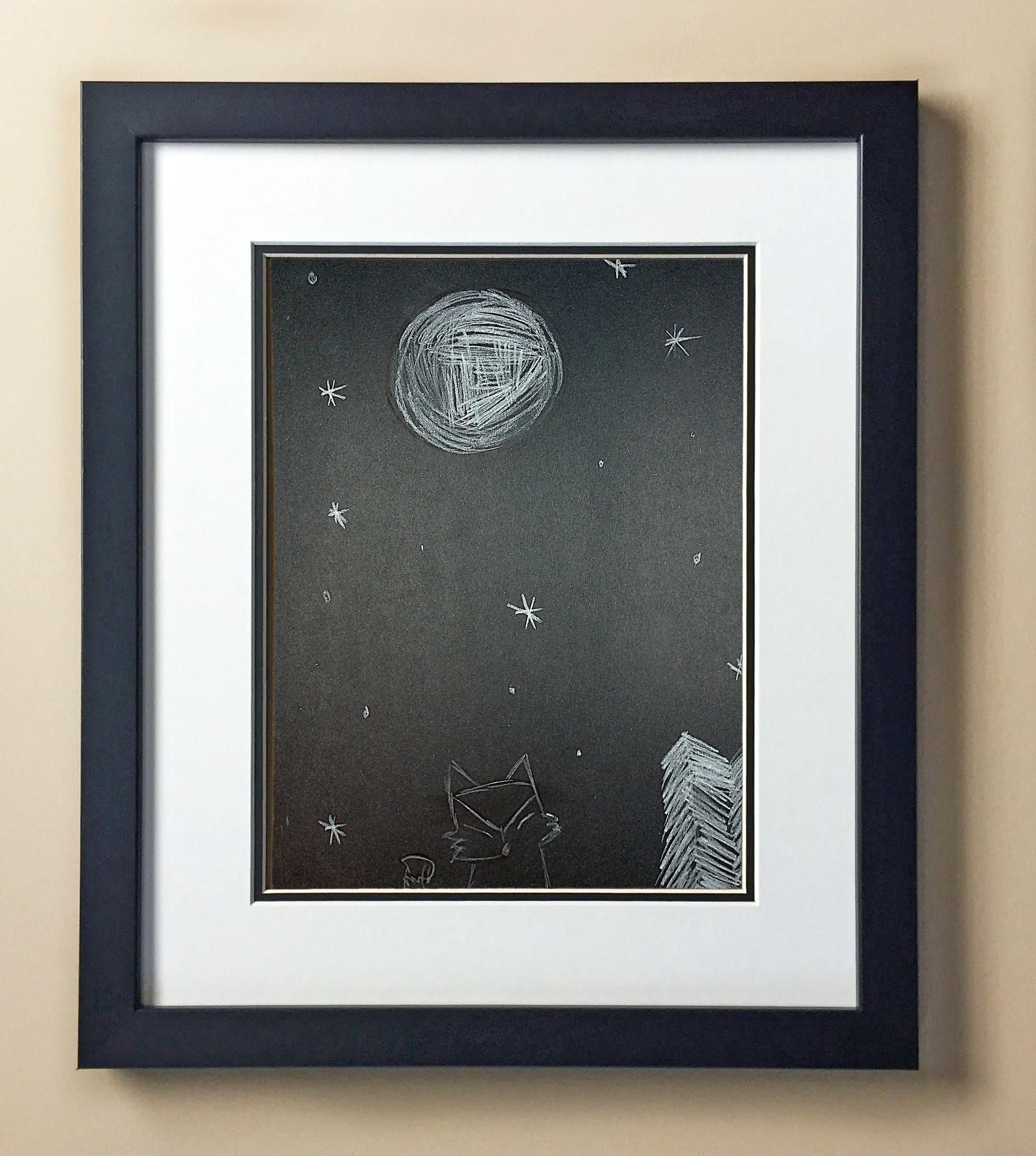 Included with the purchase is the Students Artwork, Frame, double matboard, shatter proof plexiglass, and a ready to hang backerboard with turnbuttons