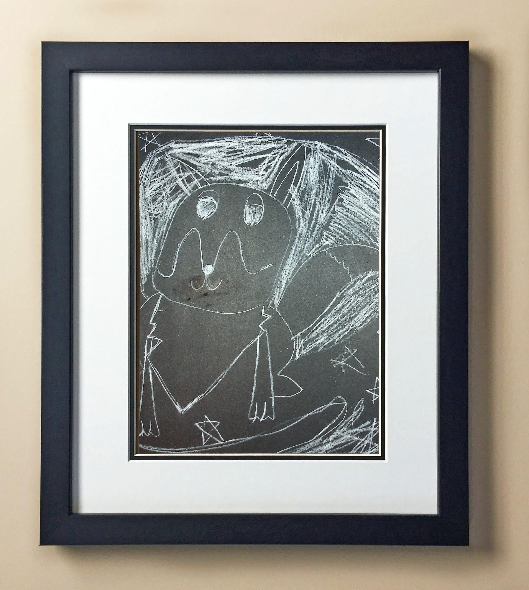 Included with the purchase is the Students Artwork, Frame, double matboard, shatter proof plexiglass, and a ready to hang backerboard with turnbuttons