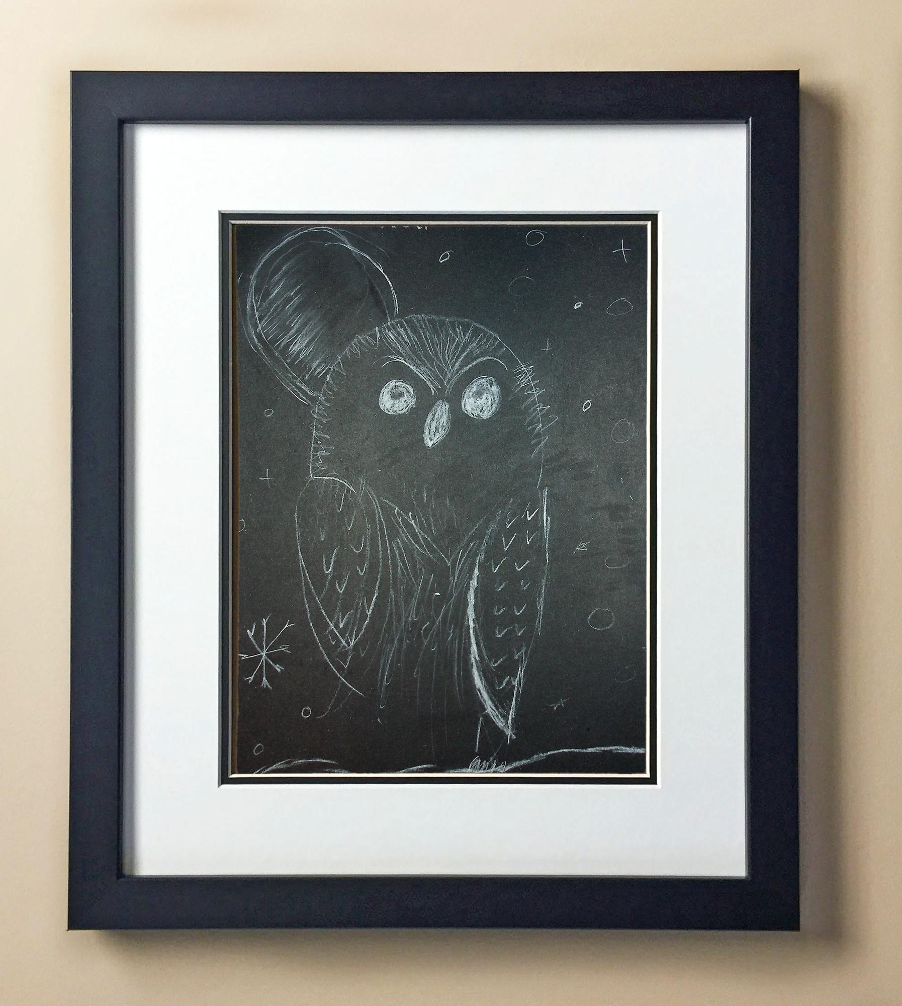 Included with the purchase is the Students Artwork, Frame, double matboard, shatter proof plexiglass, and a ready to hang backerboard with turnbuttons