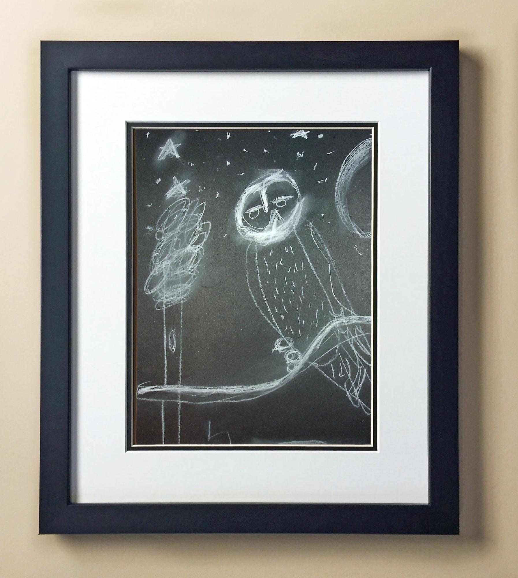 Included with the purchase is the Students Artwork, Frame, double matboard, shatter proof plexiglass, and a ready to hang backerboard with turnbuttons