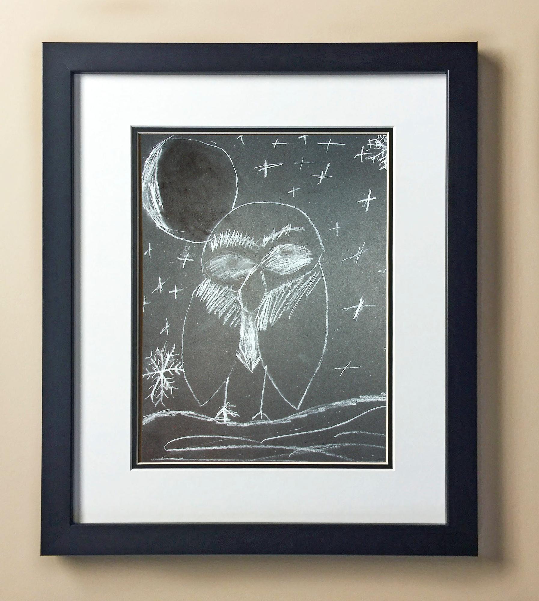 Included with the purchase is the Students Artwork, Frame, double matboard, shatter proof plexiglass, and a ready to hang backerboard with turnbuttons