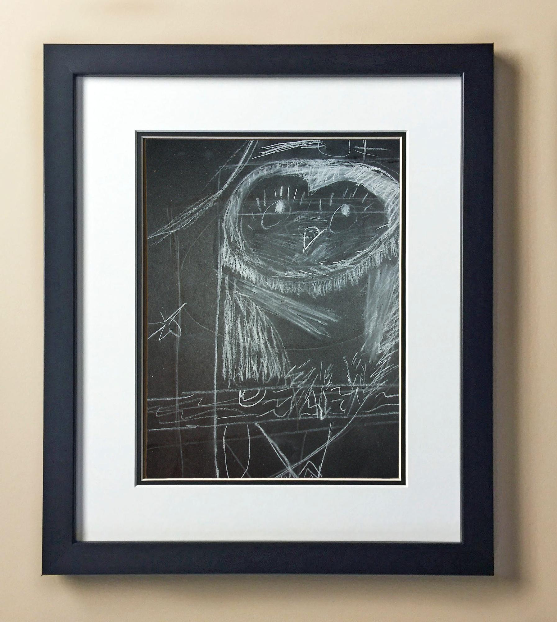 Included with the purchase is the Students Artwork, Frame, double matboard, shatter proof plexiglass, and a ready to hang backerboard with turnbuttons