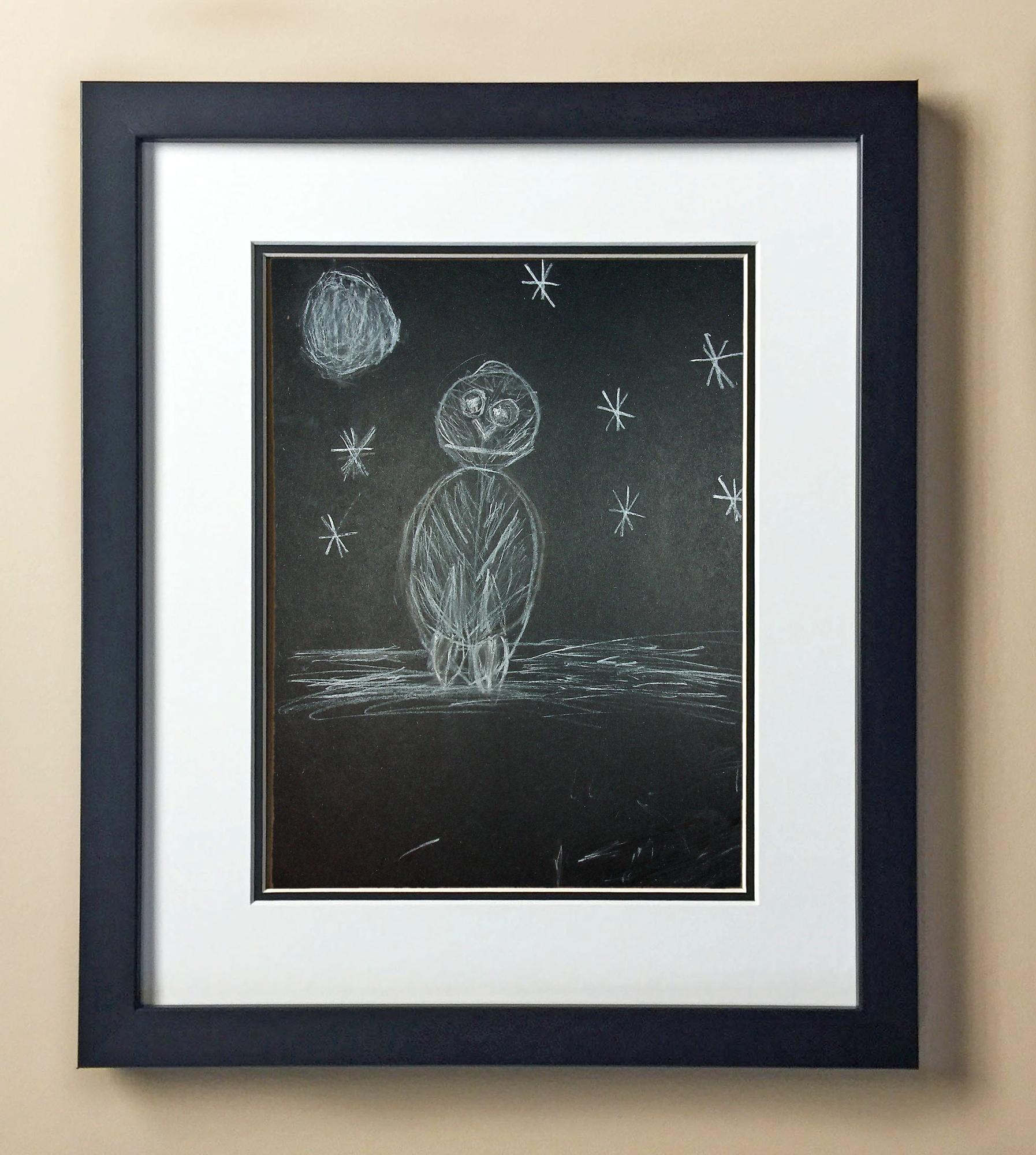 Included with the purchase is the Students Artwork, Frame, double matboard, shatter proof plexiglass, and a ready to hang backerboard with turnbuttons