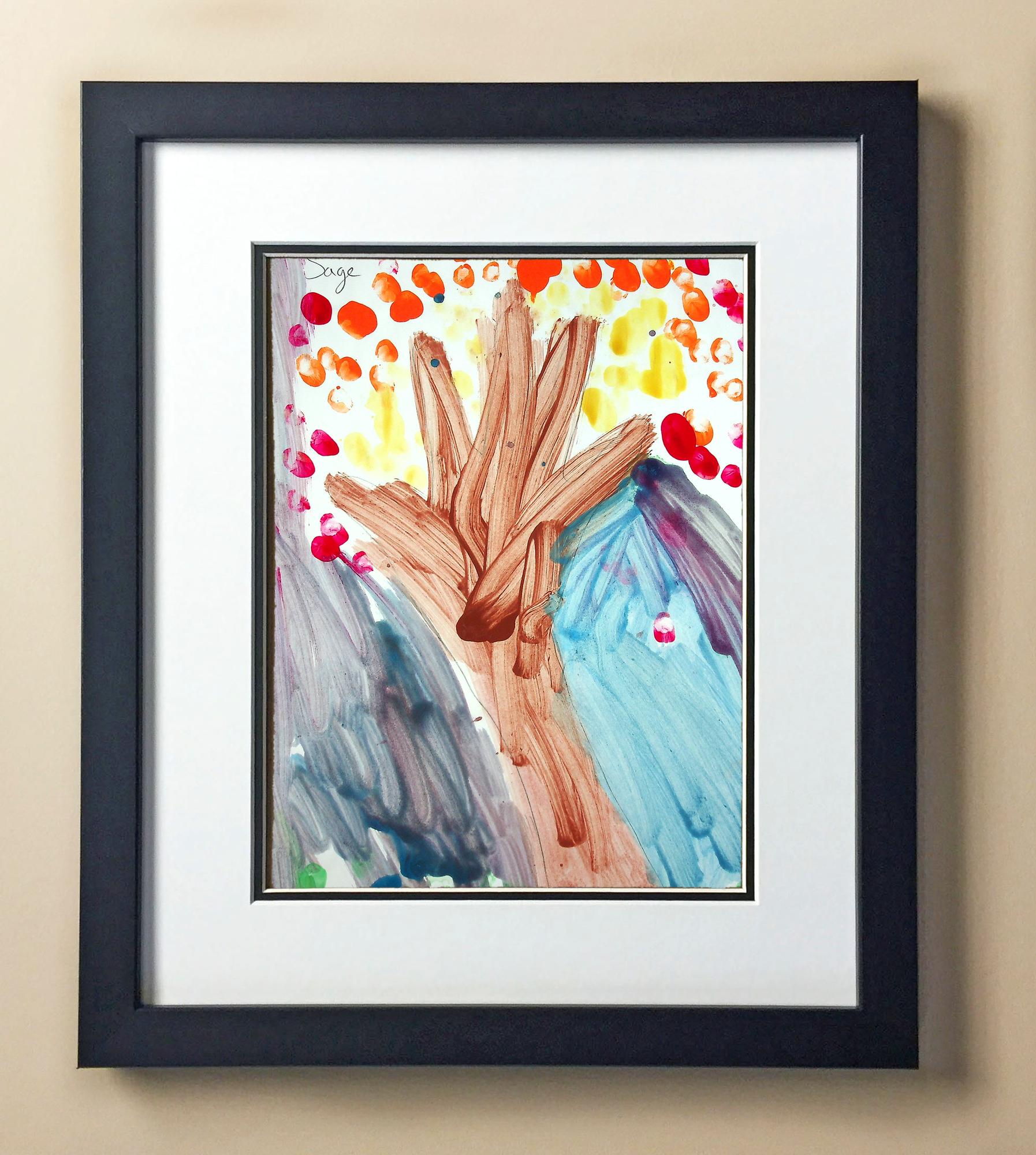 Included with the purchase is the Students Artwork, Frame, double matboard, shatter proof plexiglass, and a ready to hang backerboard with turnbuttons