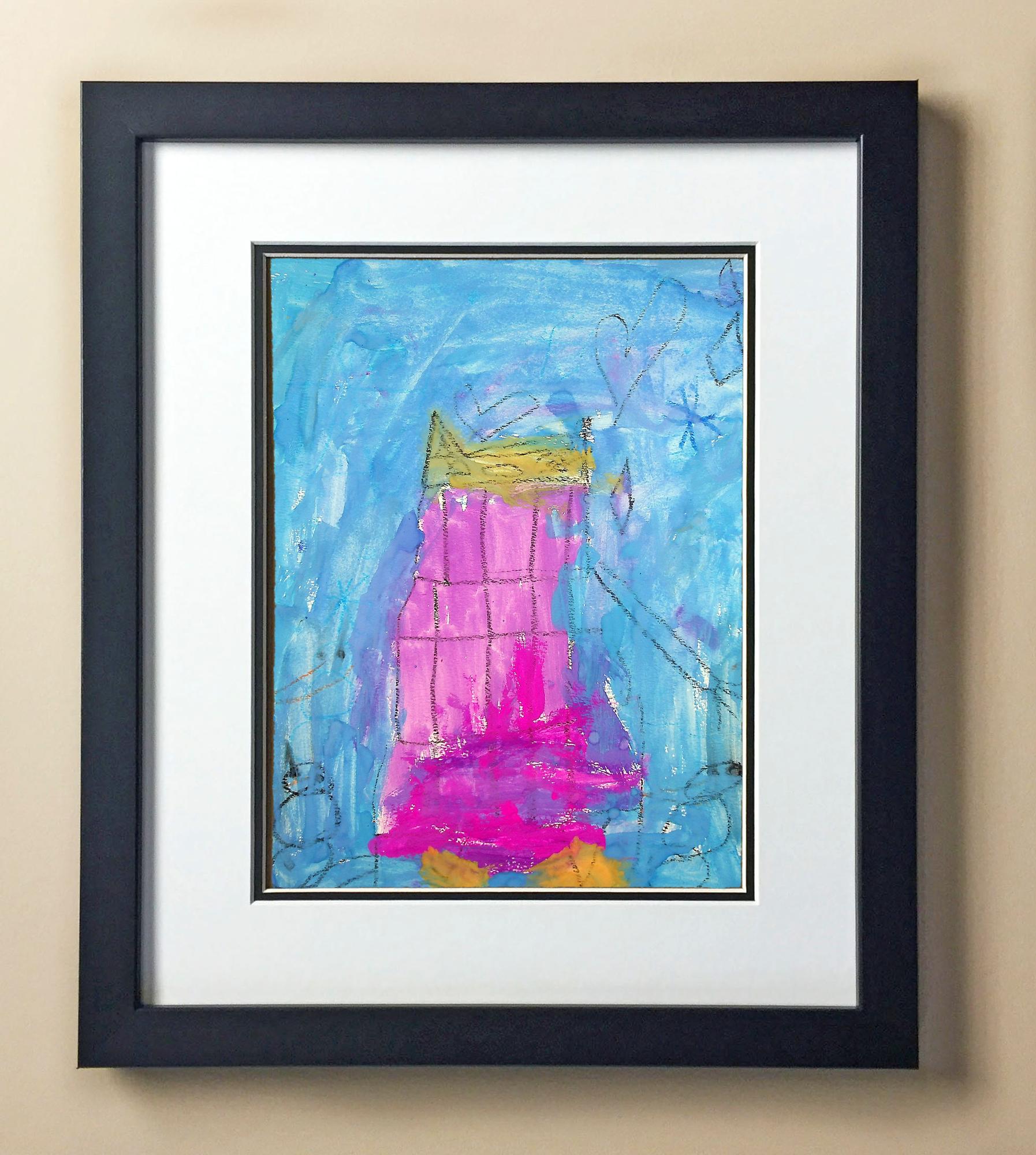 Included with the purchase is the Students Artwork, Frame, double matboard, shatter proof plexiglass, and a ready to hang backerboard with turnbuttons