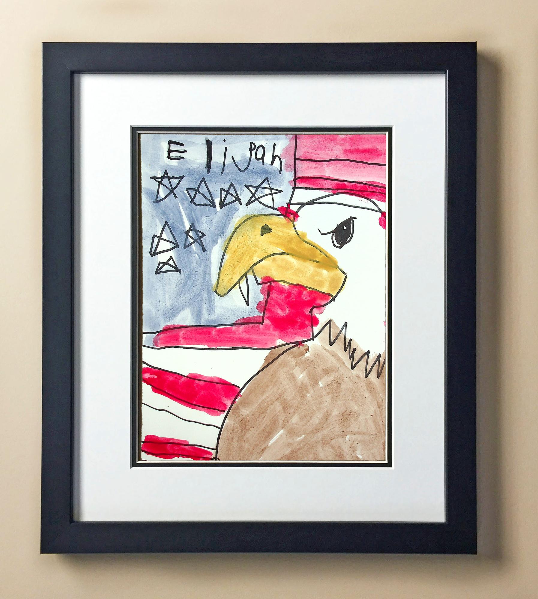 Included with the purchase is the Students Artwork, Frame, double matboard, shatter proof plexiglass, and a ready to hang backerboard with turnbuttons