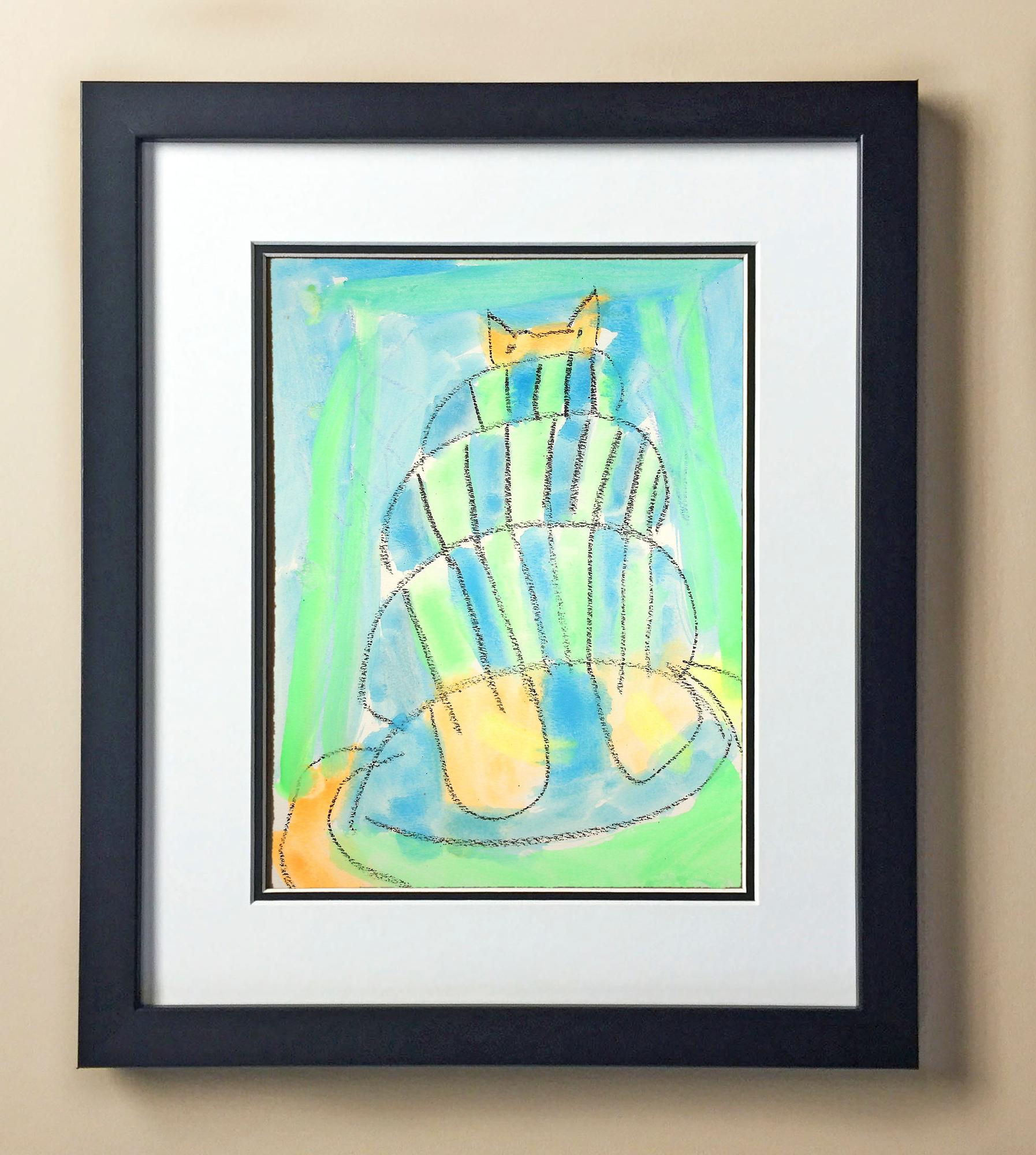 Included with the purchase is the Students Artwork, Frame, double matboard, shatter proof plexiglass, and a ready to hang backerboard with turnbuttons