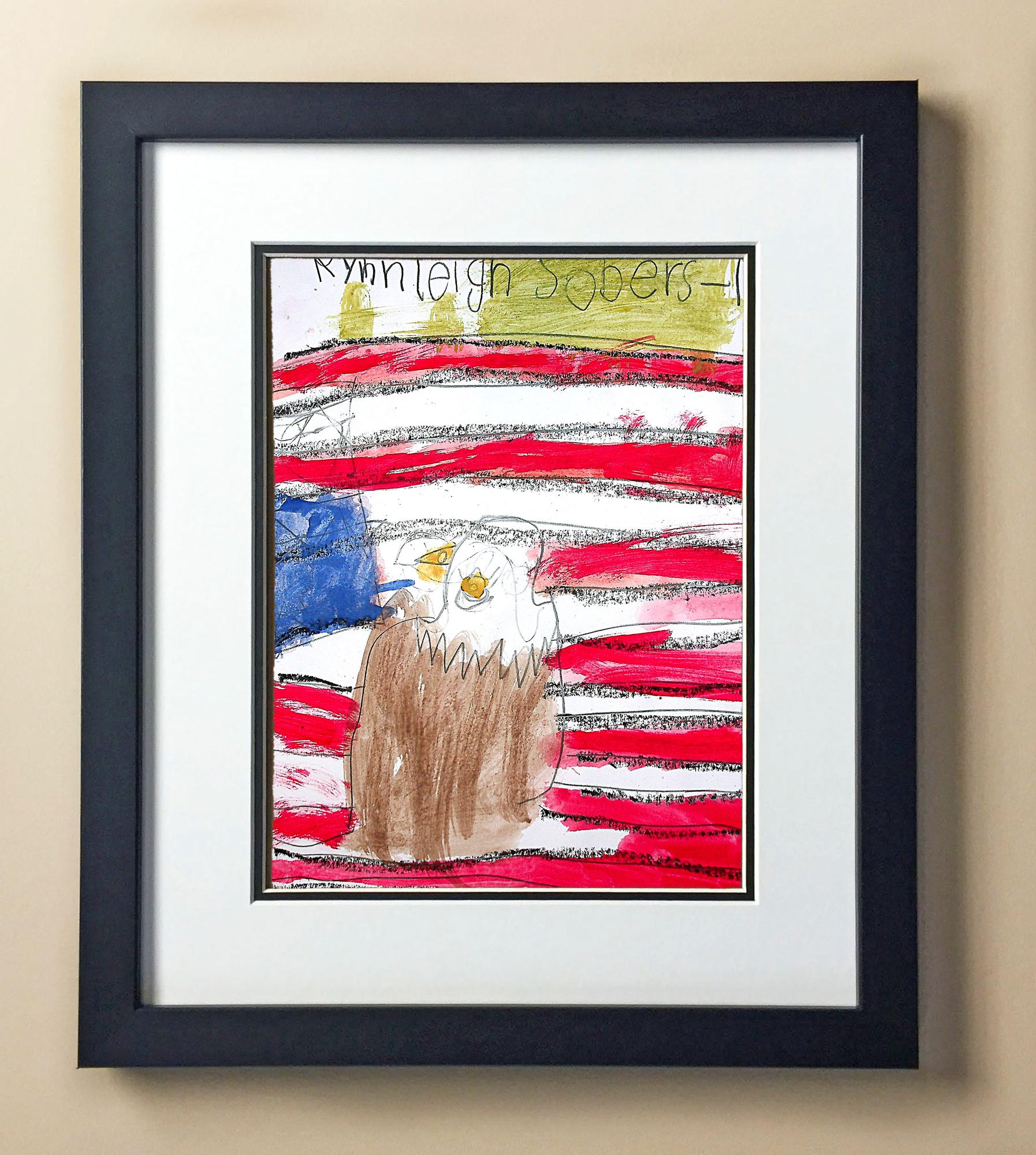 Included with the purchase is the Students Artwork, Frame, double matboard, shatter proof plexiglass, and a ready to hang backerboard with turnbuttons