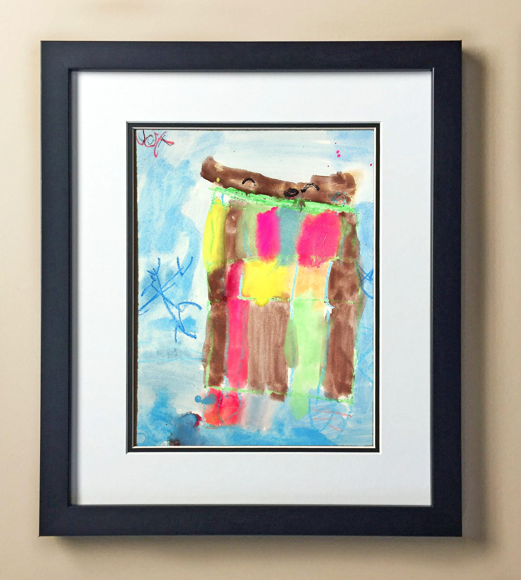 Included with the purchase is the Students Artwork, Frame, double matboard, shatter proof plexiglass, and a ready to hang backerboard with turnbuttons