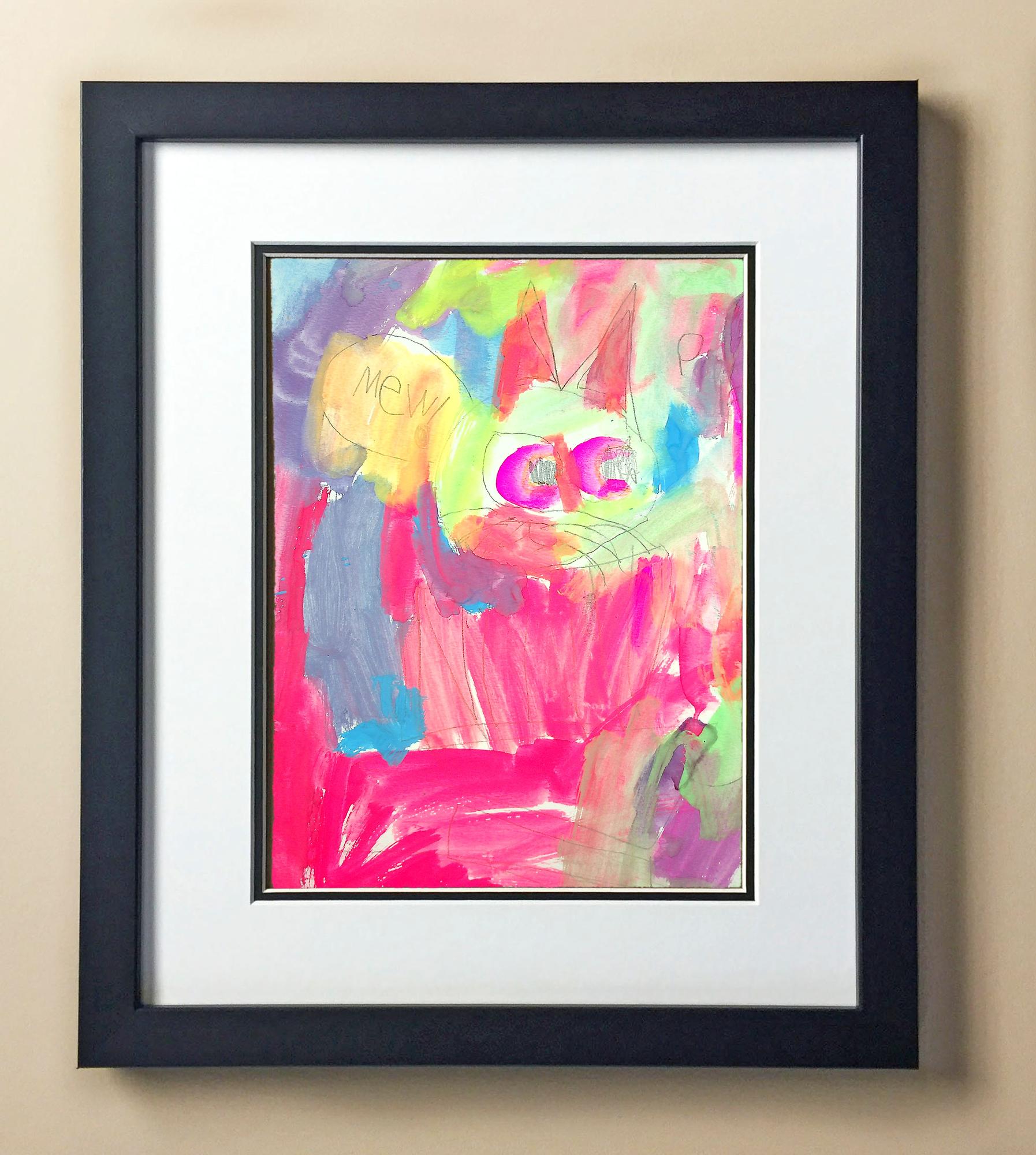 Included with the purchase is the Students Artwork, Frame, double matboard, shatter proof plexiglass, and a ready to hang backerboard with turnbuttons