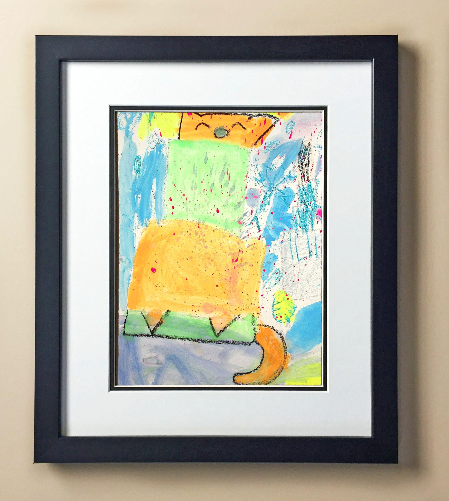 Included with the purchase is the Students Artwork, Frame, double matboard, shatter proof plexiglass, and a ready to hang backerboard with turnbuttons