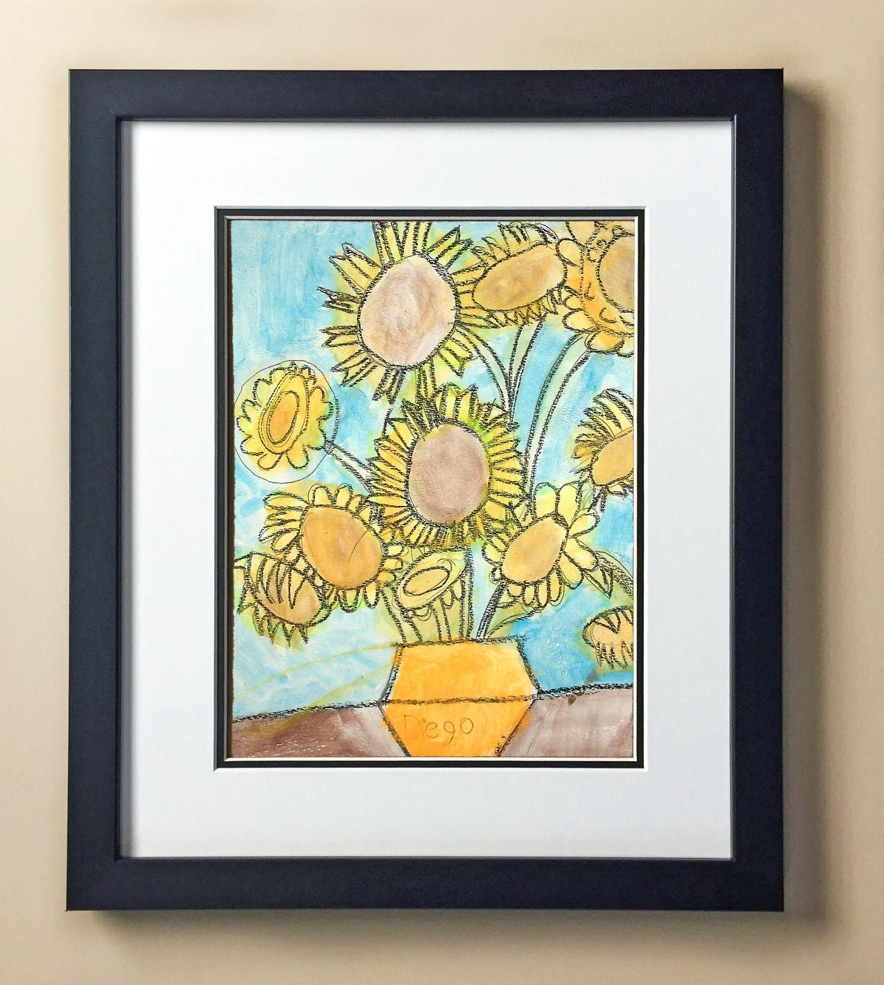 Included with the purchase is the Students Artwork, Frame, double matboard, shatter proof plexiglass, and a ready to hang backerboard with turnbuttons