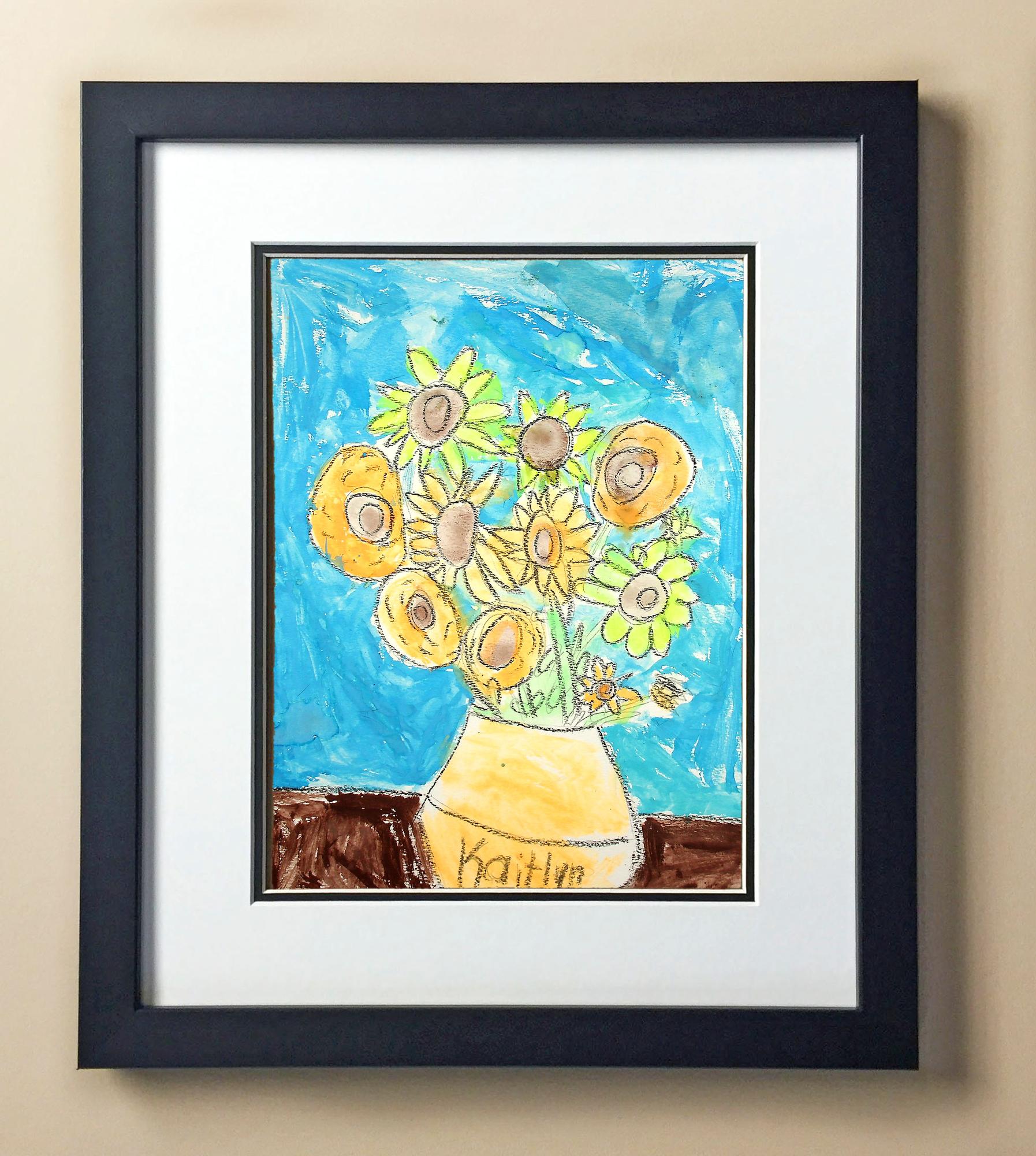Included with the purchase is the Students Artwork, Frame, double matboard, shatter proof plexiglass, and a ready to hang backerboard with turnbuttons