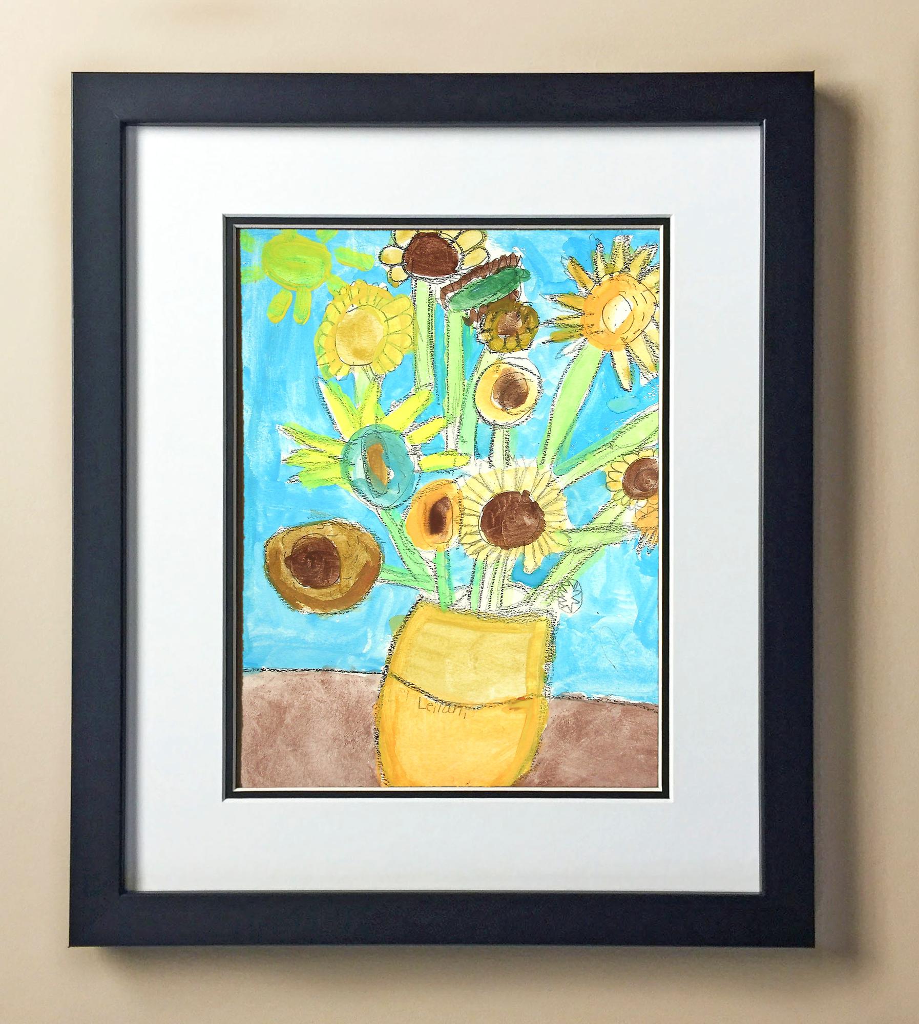 Included with the purchase is the Students Artwork, Frame, double matboard, shatter proof plexiglass, and a ready to hang backerboard with turnbuttons