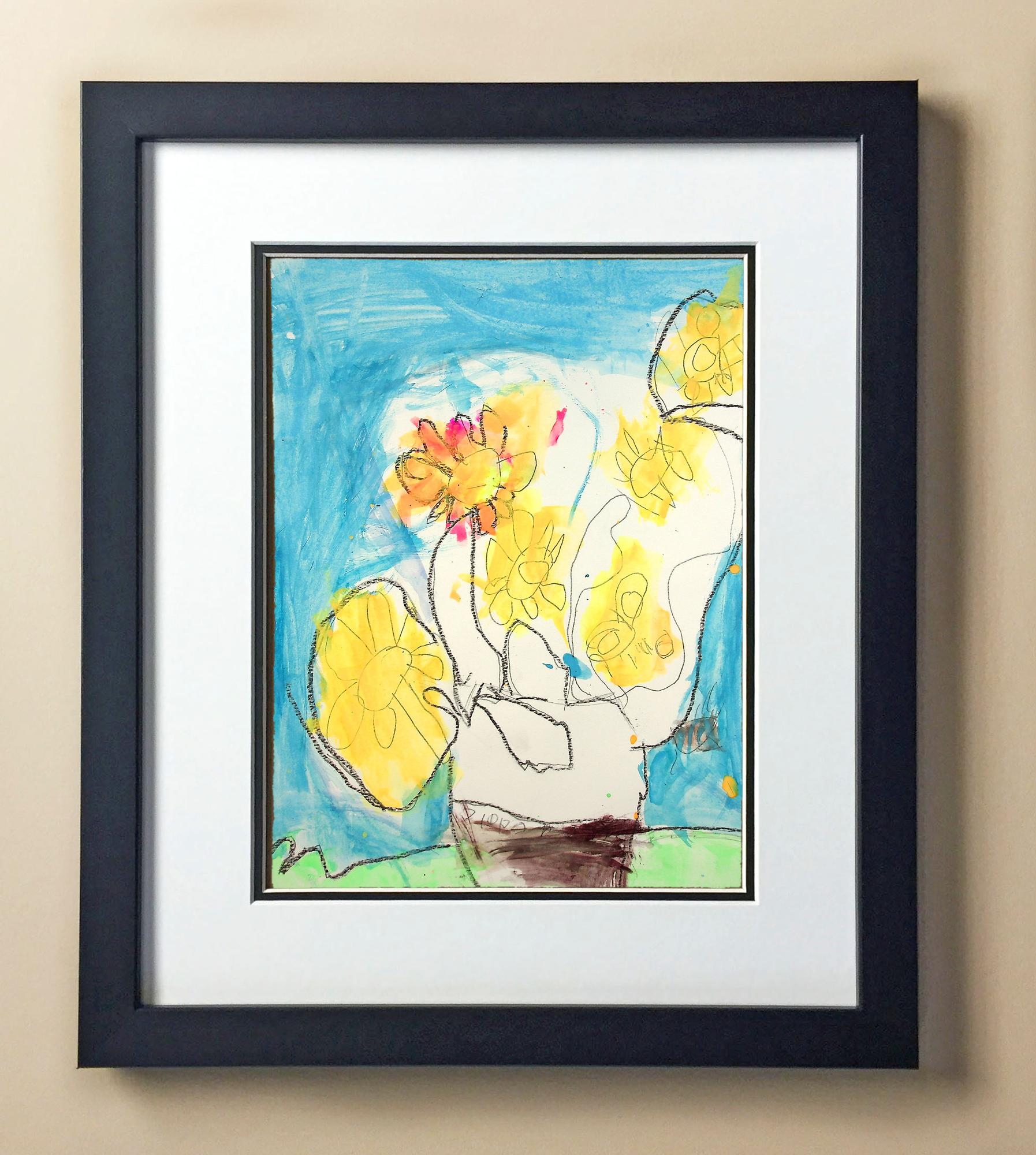 Included with the purchase is the Students Artwork, Frame, double matboard, shatter proof plexiglass, and a ready to hang backerboard with turnbuttons