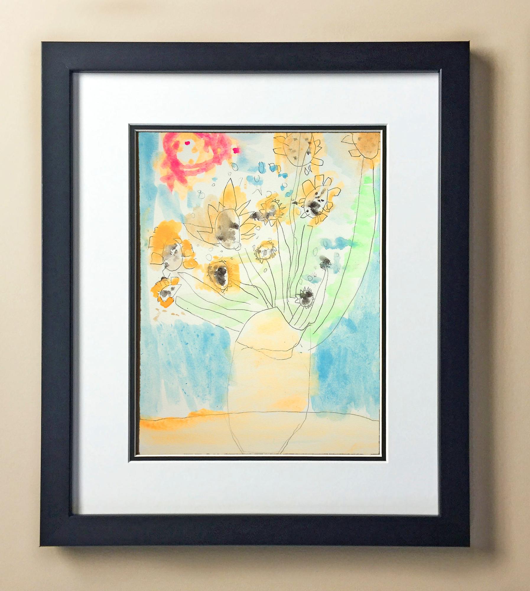 Included with the purchase is the Students Artwork, Frame, double matboard, shatter proof plexiglass, and a ready to hang backerboard with turnbuttons