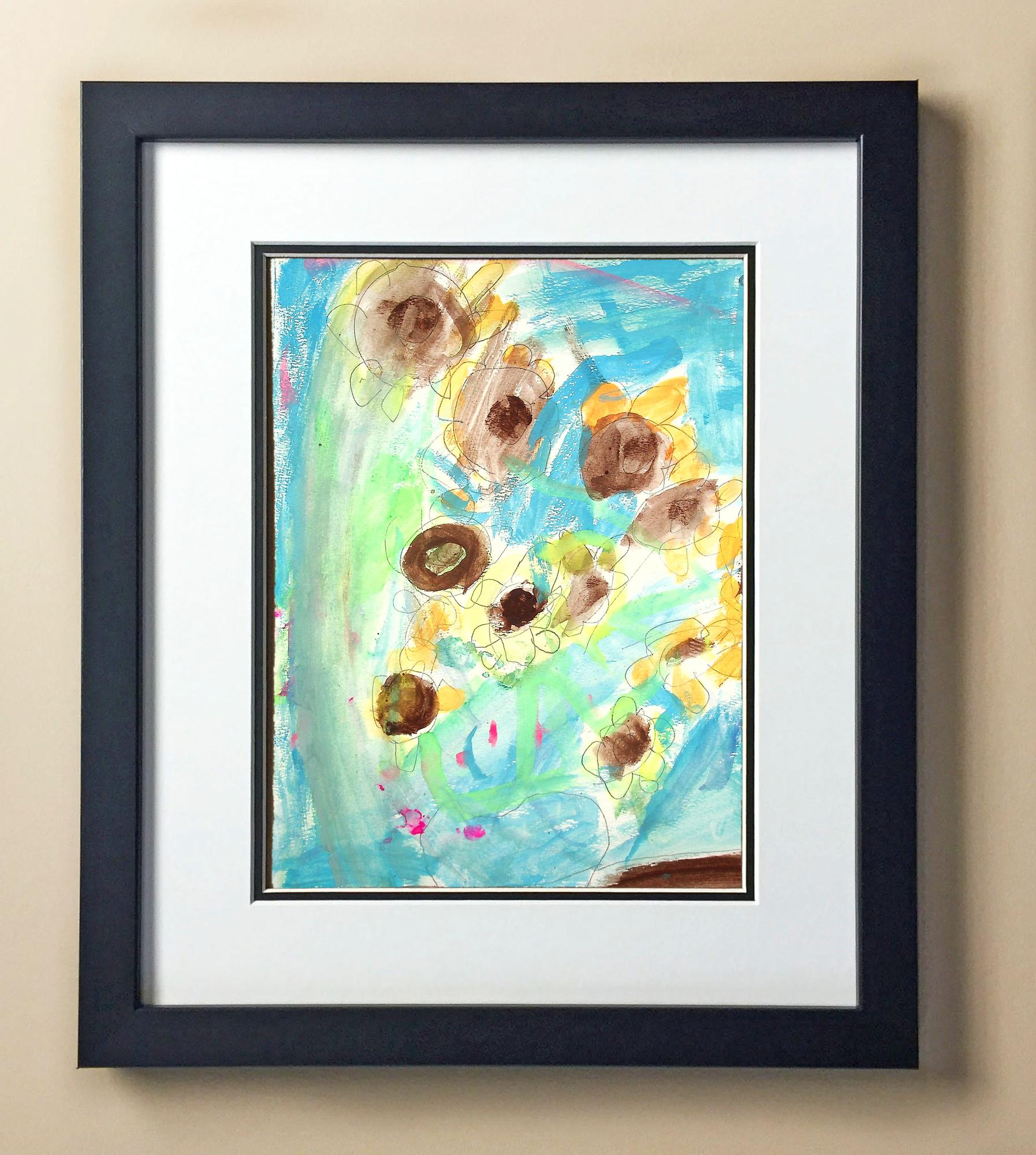 Included with the purchase is the Students Artwork, Frame, double matboard, shatter proof plexiglass, and a ready to hang backerboard with turnbuttons