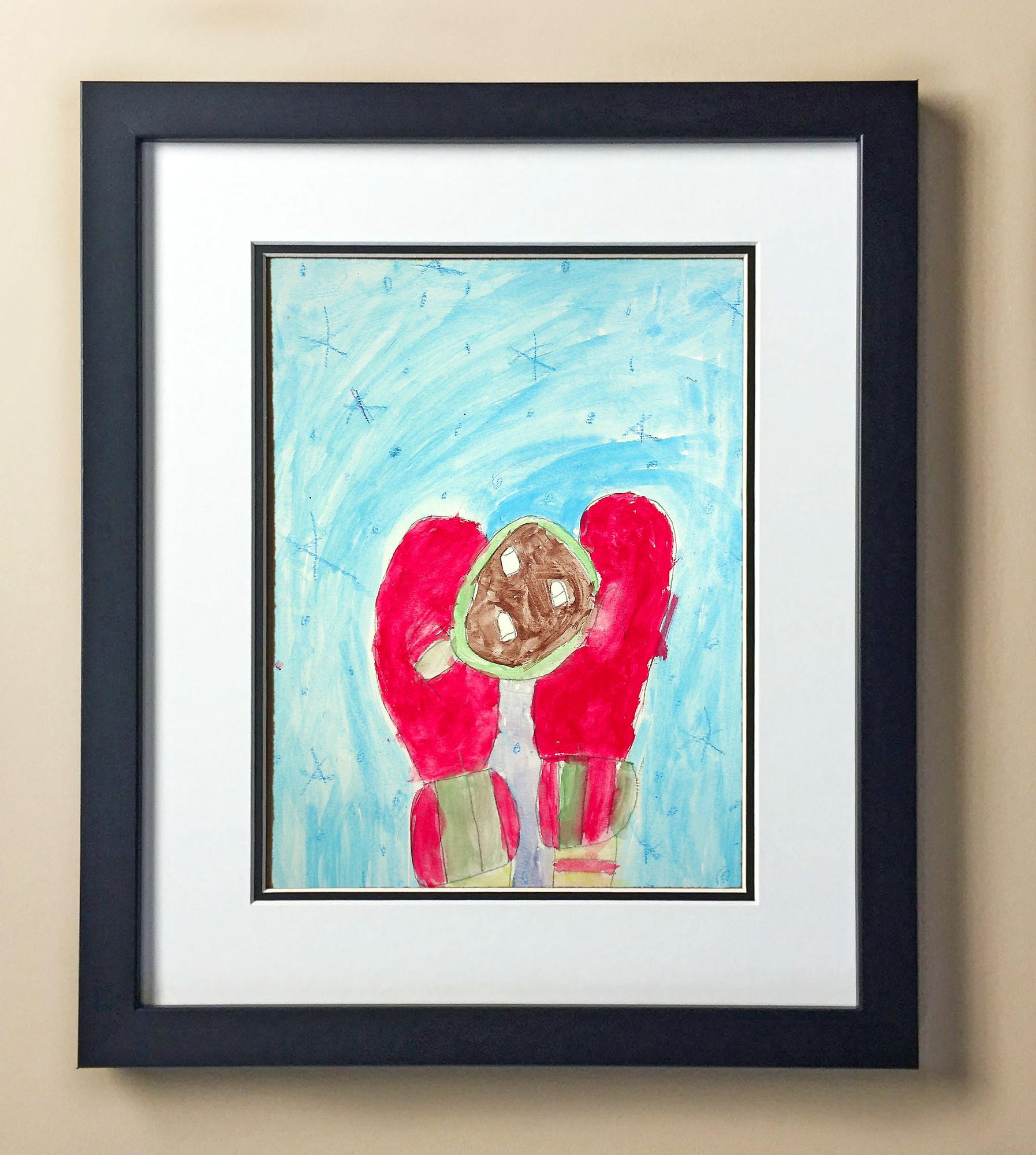 Included with the purchase is the Students Artwork, Frame, double matboard, shatter proof plexiglass, and a ready to hang backerboard with turnbuttons