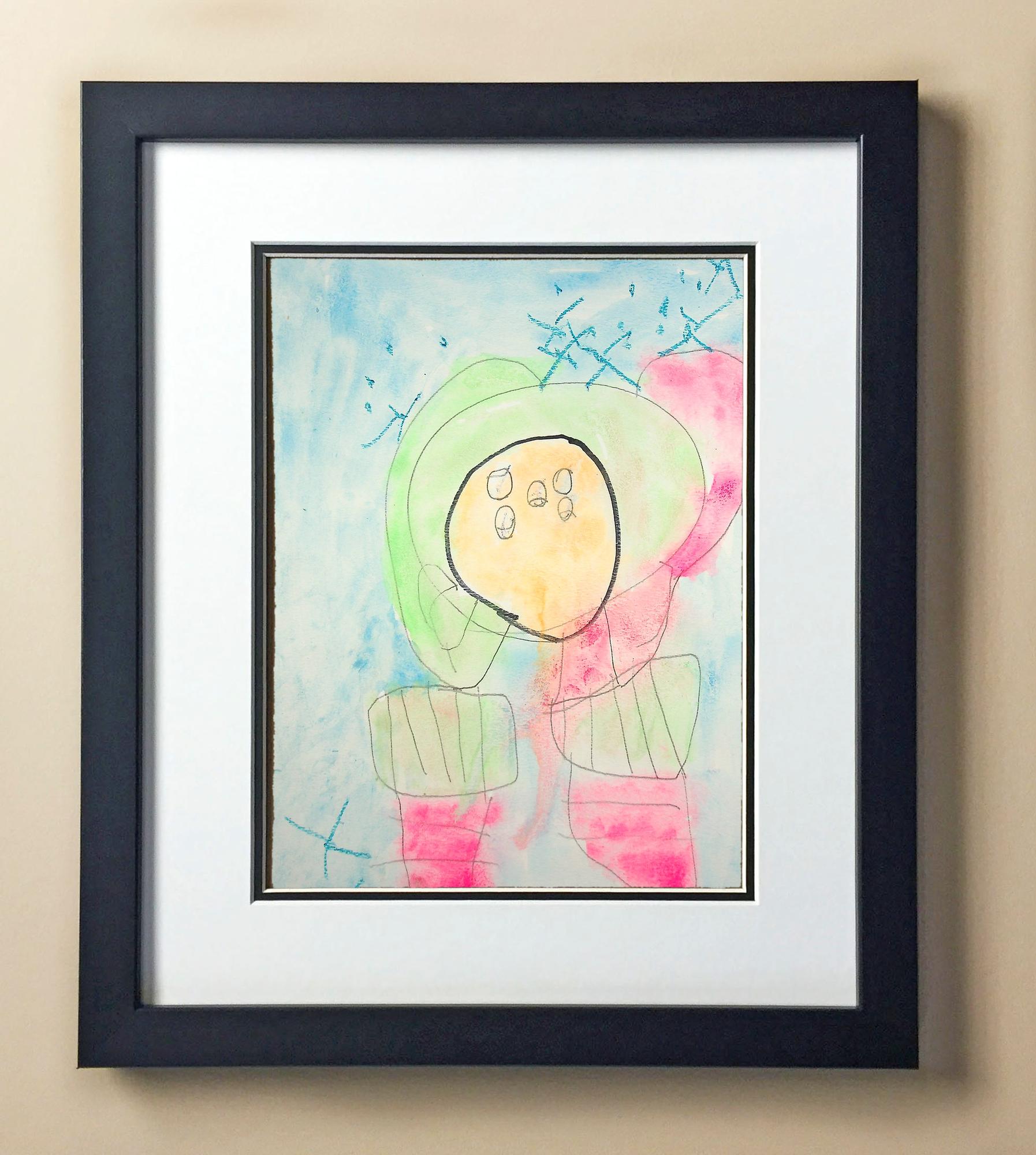 Included with the purchase is the Students Artwork, Frame, double matboard, shatter proof plexiglass, and a ready to hang backerboard with turnbuttons
