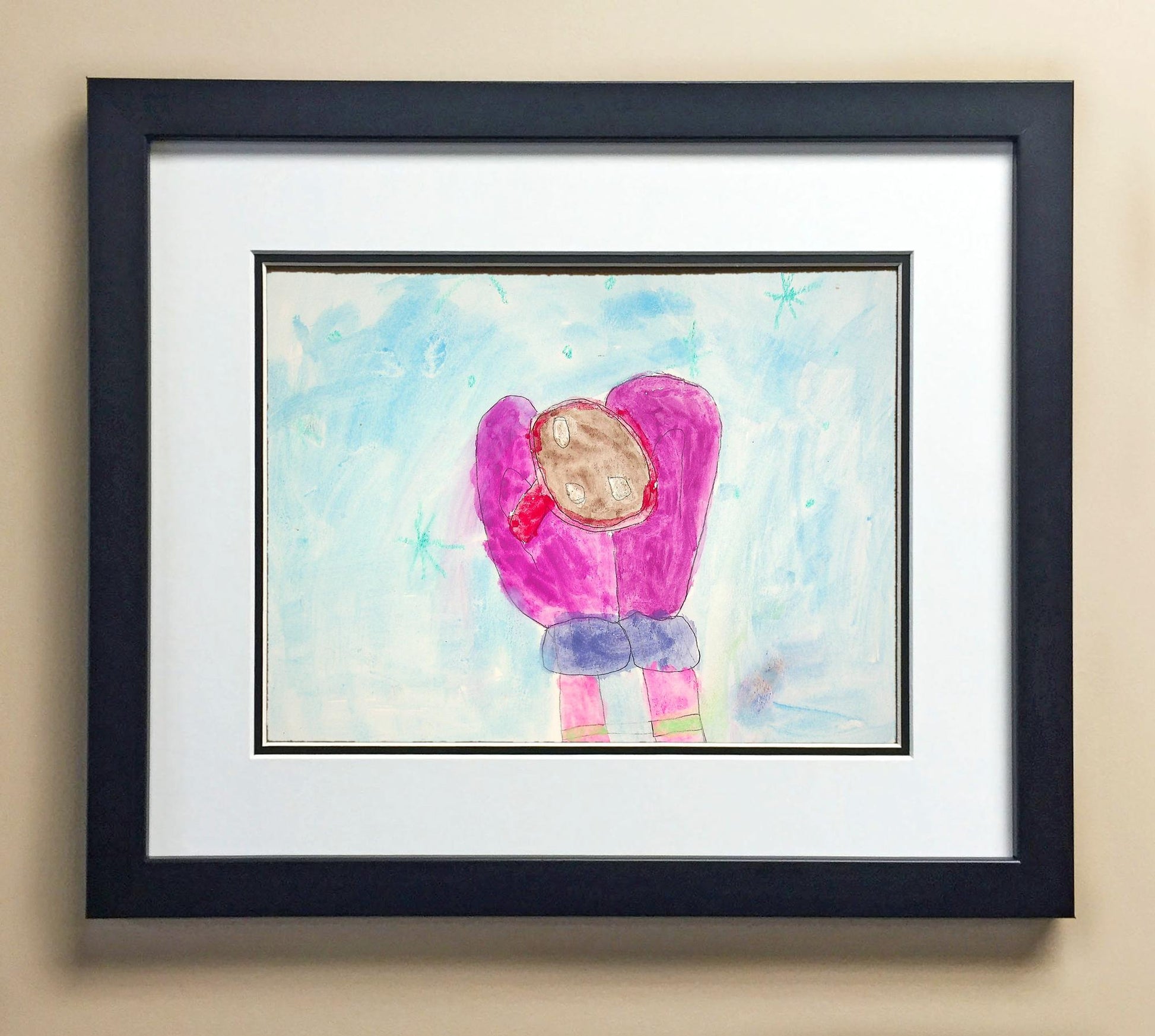 Included with the purchase is the Students Artwork, Frame, double matboard, shatter proof plexiglass, and a ready to hang backerboard with turnbuttons